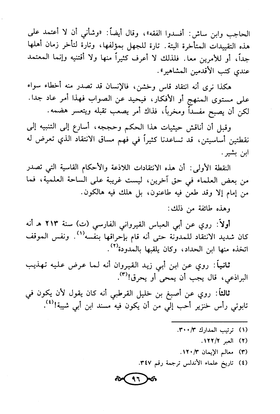 ثانيًا: روي عن ابن أبي زيد القيروان أنه لما عرض عليه تهذيب البراذعي، قال يجب أن يمحى أو يحرق! (¬3).