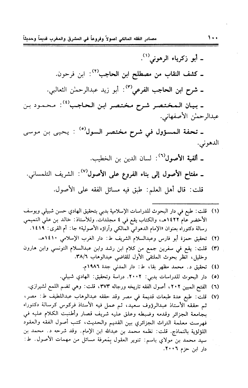 - شرح ابن الحاجب الفرعي: أبو زيد عبد الرحمن الثعالبي.