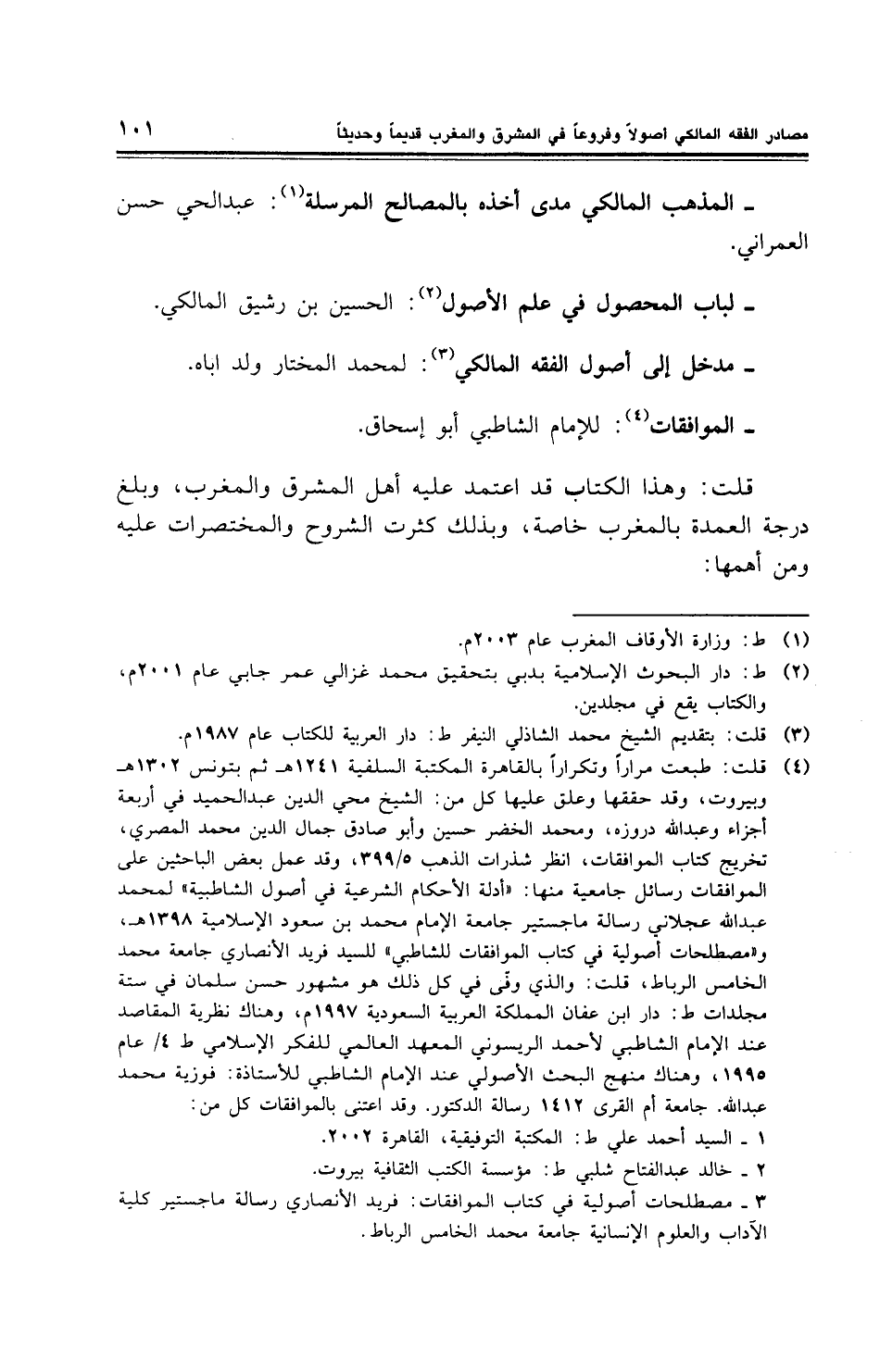 - المذهب المالكي مدى أخذه المصالح المرسلة: عبد الحي حسن العمراني.