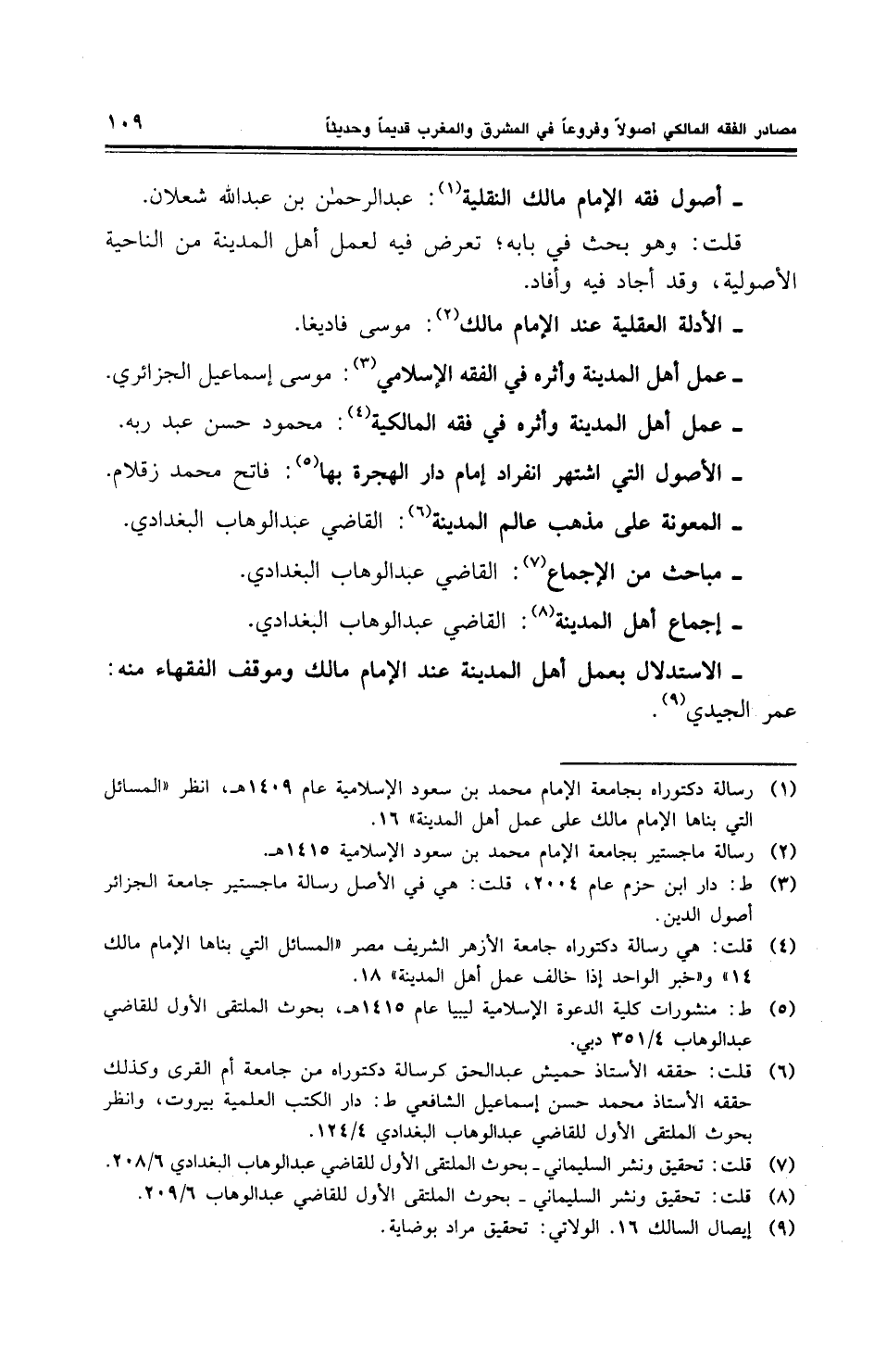 - أصول فقه الإمام مالك النقلية: عبد الرحمن بن عبد الله شعلان.