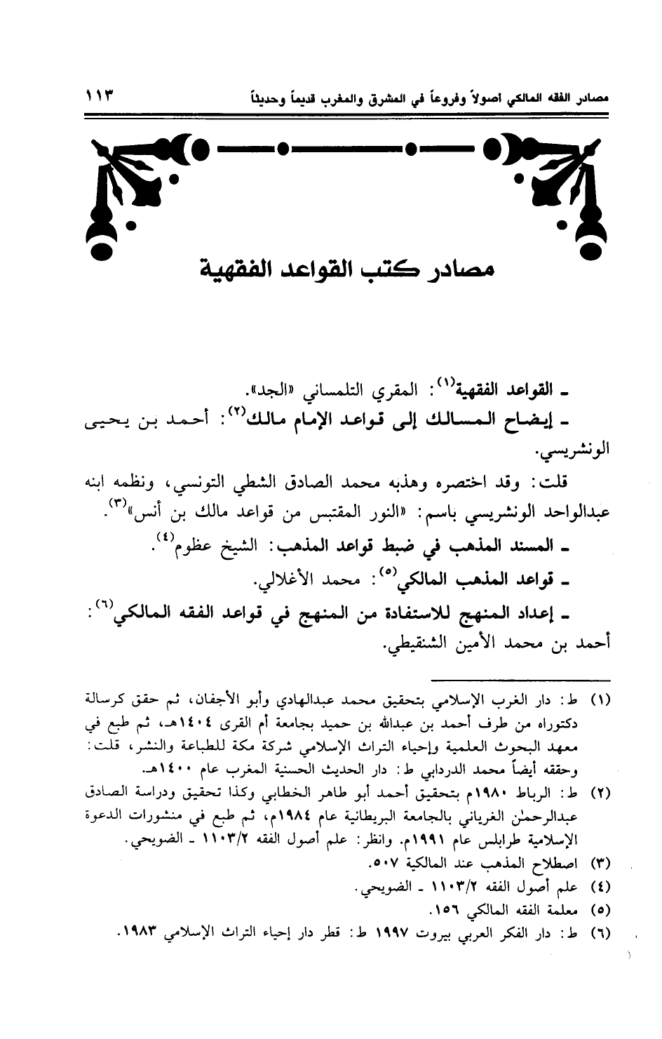 - قواعد المذهب المالكي: محمد الأغلالي.