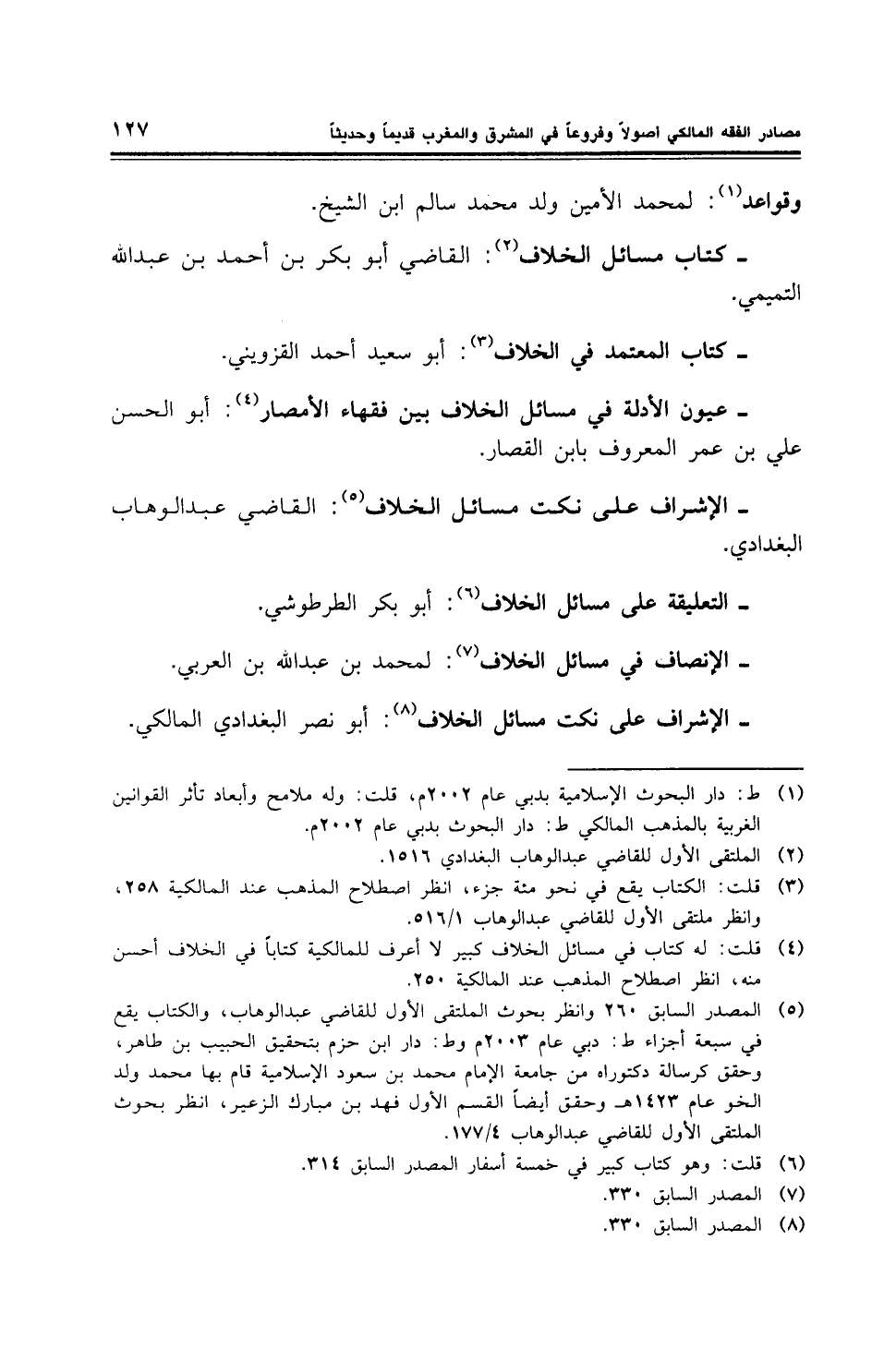 - الإشراف على نكت مسائل الخلاف: أبو نصر البغدادي المالكي.