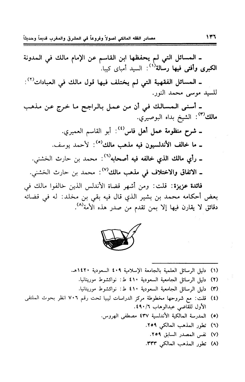 - المسائل الفقهية التي لم يختلف فيها قول مالك في العبادات: للسيد موسى محمد النور.