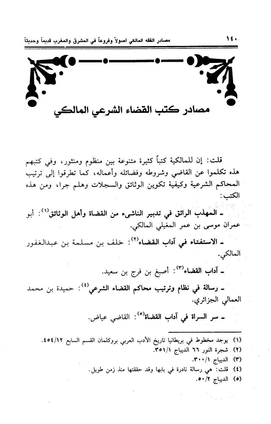 قلت: إن للمالكية كتباً كثيرة متنوعة بين منظوم ومنثور، وفي كتبهم هذه تكلموا عن القاضي وشروطه وفضائله وأعماله، كما تطرقوا إلى ترتيب المحاكم الشرعية وكيفية تكوين الوثائق والسجلات وهلم جرا، ومن هذه الكتب: