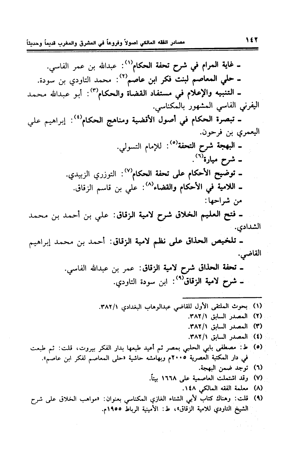 - توضيح الأحكام والقضاء: علي بن قاسم الزقاق.