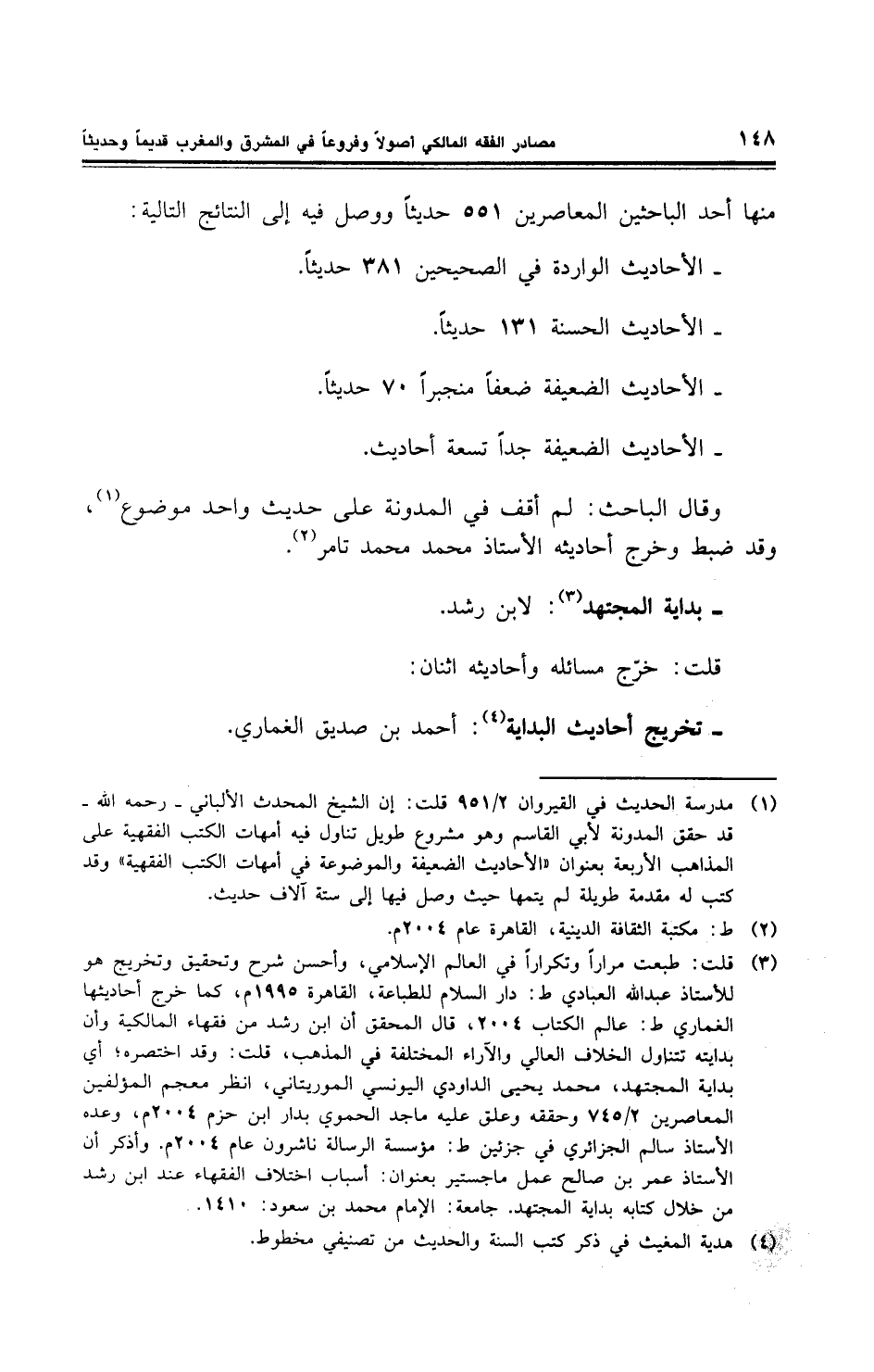 وقال الباحث: لم أقف في المدونة على حديث واحد موضوع، وقد ضبط وخرج أحاديثه الأستاذ محمد محمد تامر.
