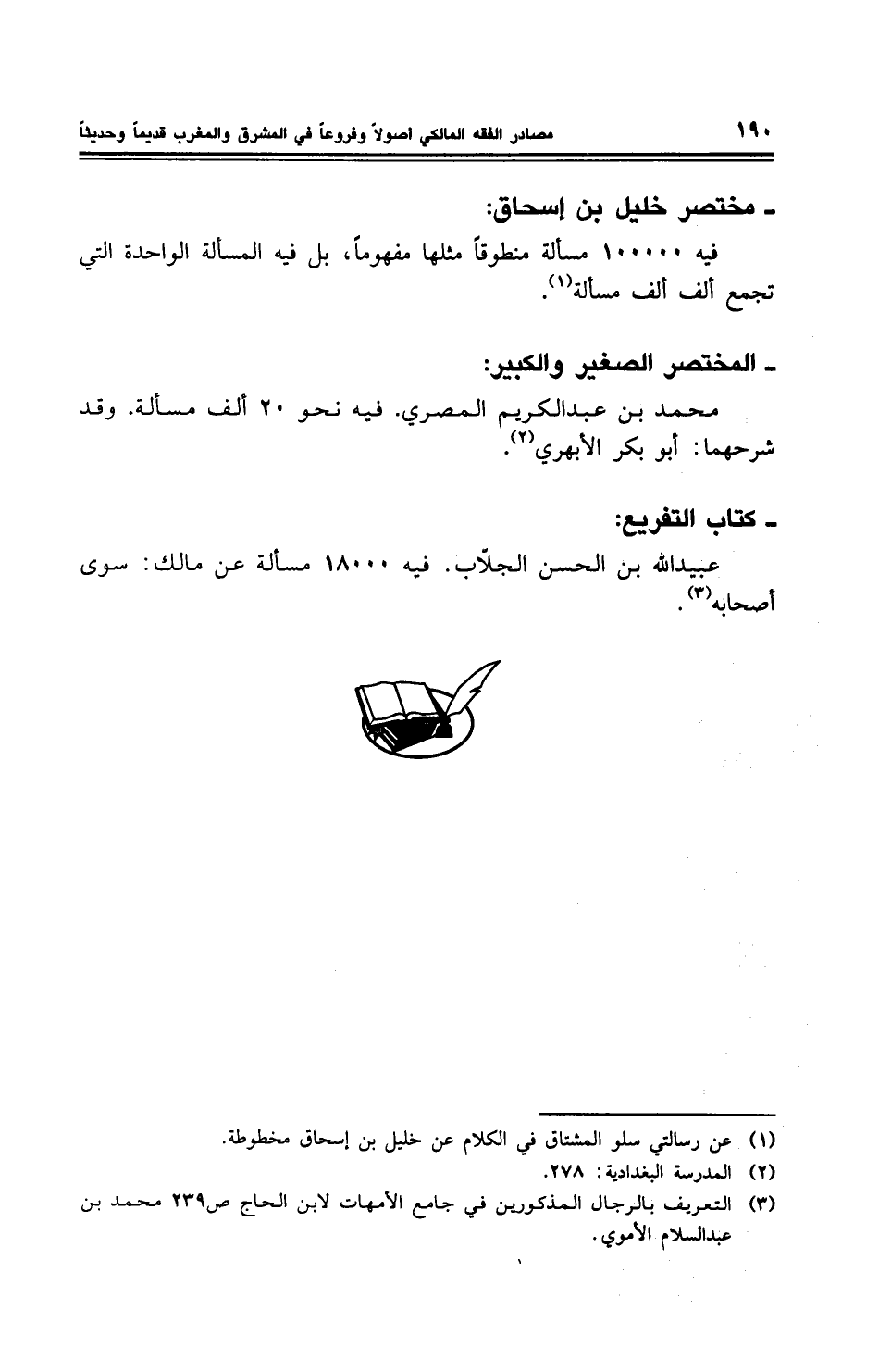 - كتاب التفريع: عبيدالله بن الحسن الجلاّب. فيه 18000 مسألة عن مالك: سوى أصحابه.