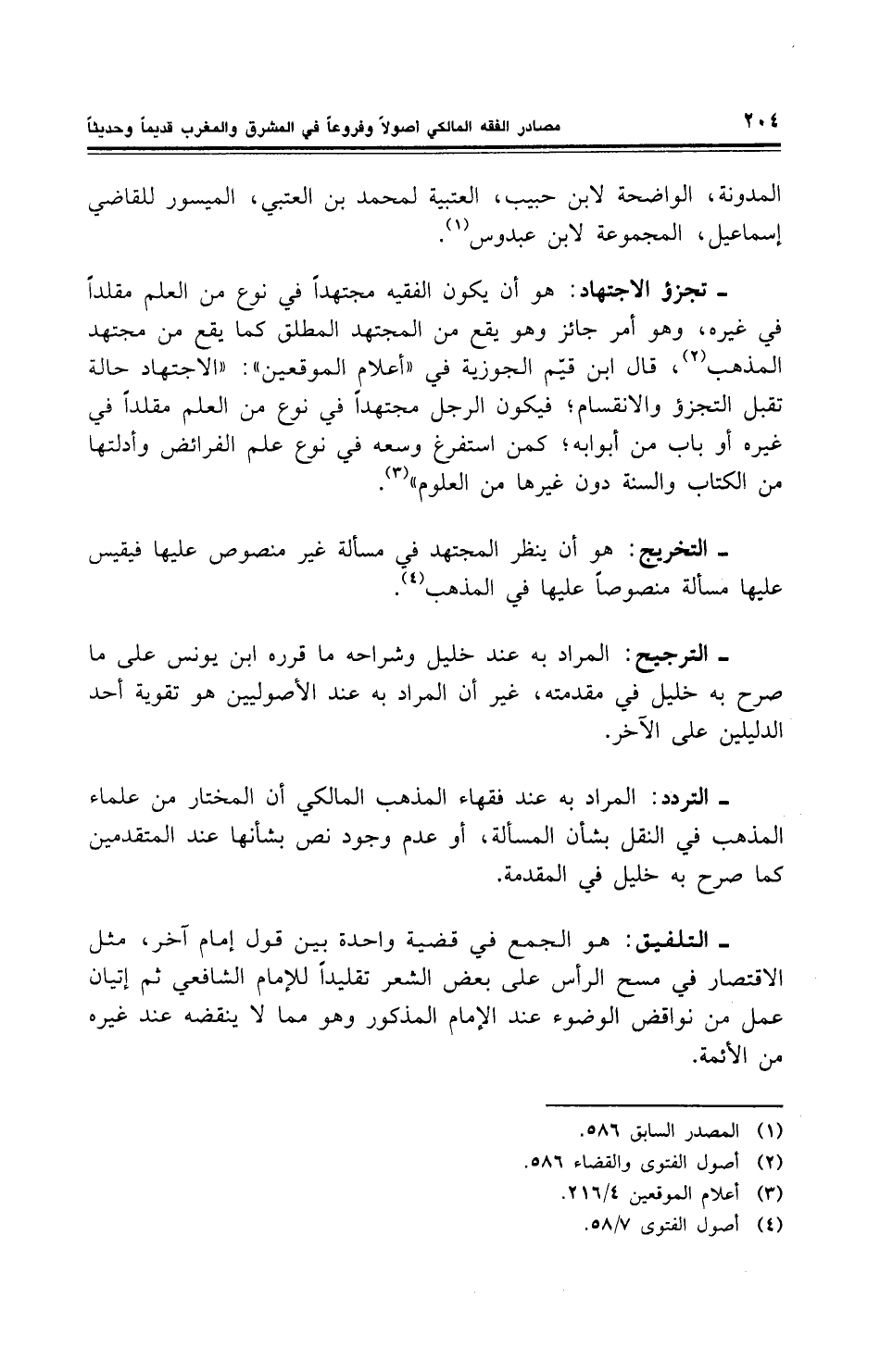 - تجزؤ الاجتهاد: هو أن يكون الفقيه مجتهداً في نوع من العلم مقلداً في غيره، وهو أمر جائز وهو يقع من المجتهد المطلق كما يقع من مجتهد المذهب، قال ابن قيّم الجوزية في " أعلام الموقعين ": " الاجتهاد حالة تقبل التجزؤ والانقسام، فيكون الرجل مجتهداً في نوع من العلم مقلداً في غيره أو باب من أبوابه؛ كمن استفرغ وسعه في نوع علم الفرائض وأدلتها من الكتاب والسنة دون غيرها من العلوم ".