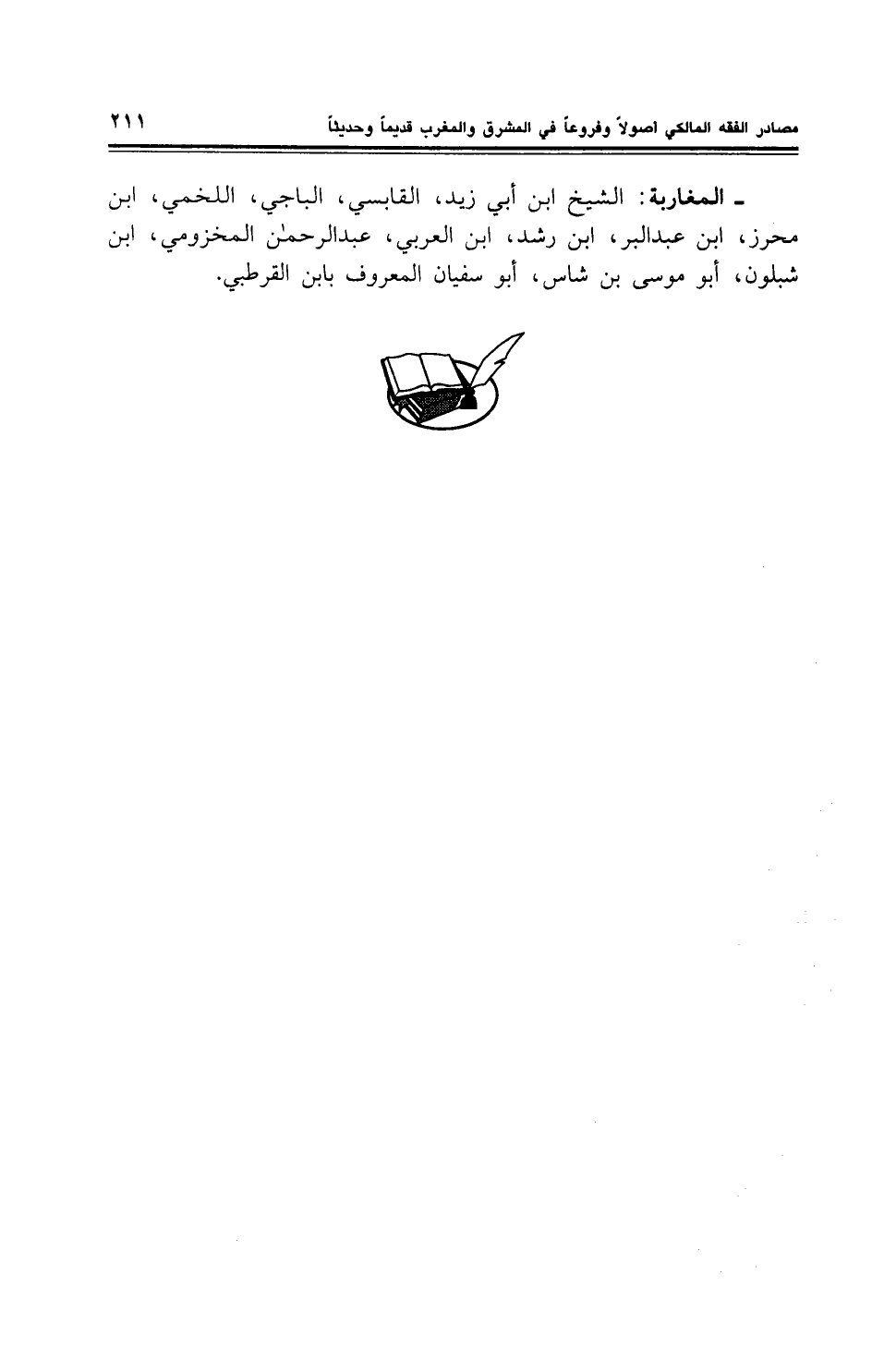 - المغاربة: الشيخ ابن أبي زيد، القابسي، الباجي، اللخمي، ابن محرز، ابن عبد البر، ابن رشد، ابن العربي، ابن العربي، عبد الرحمن المخزومي، ابن شبلون، أبو موسى بن شاس، أبو سفيان المعروف بابن القرطبي.