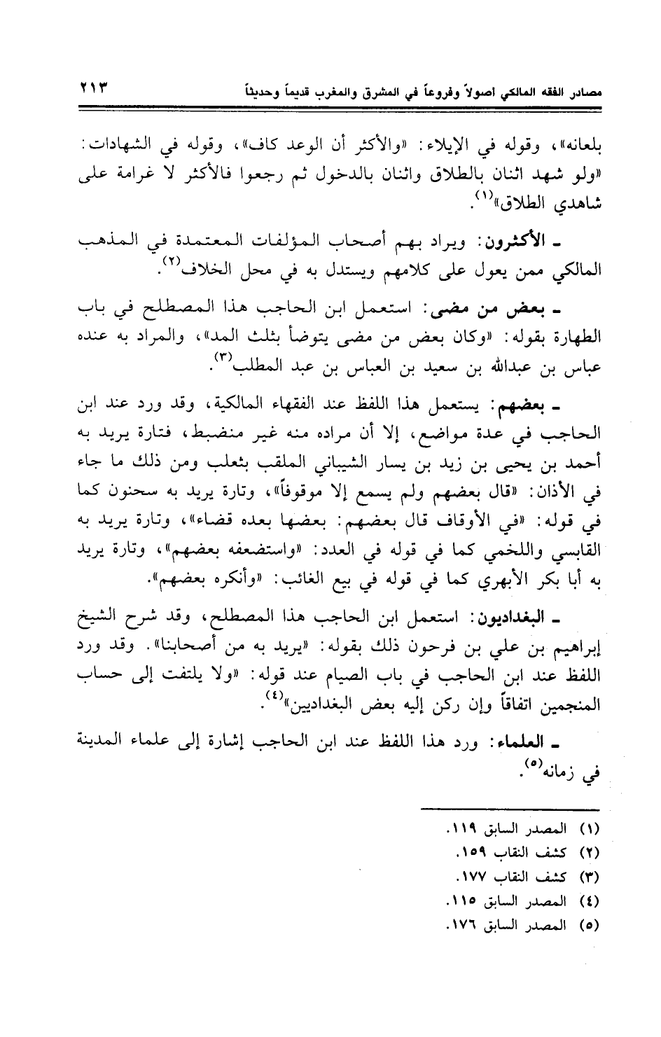 - العلماء: ورد هذا اللفظ عند ابن الحاجب إشارة إلى علماء المدينة في زمانه.
