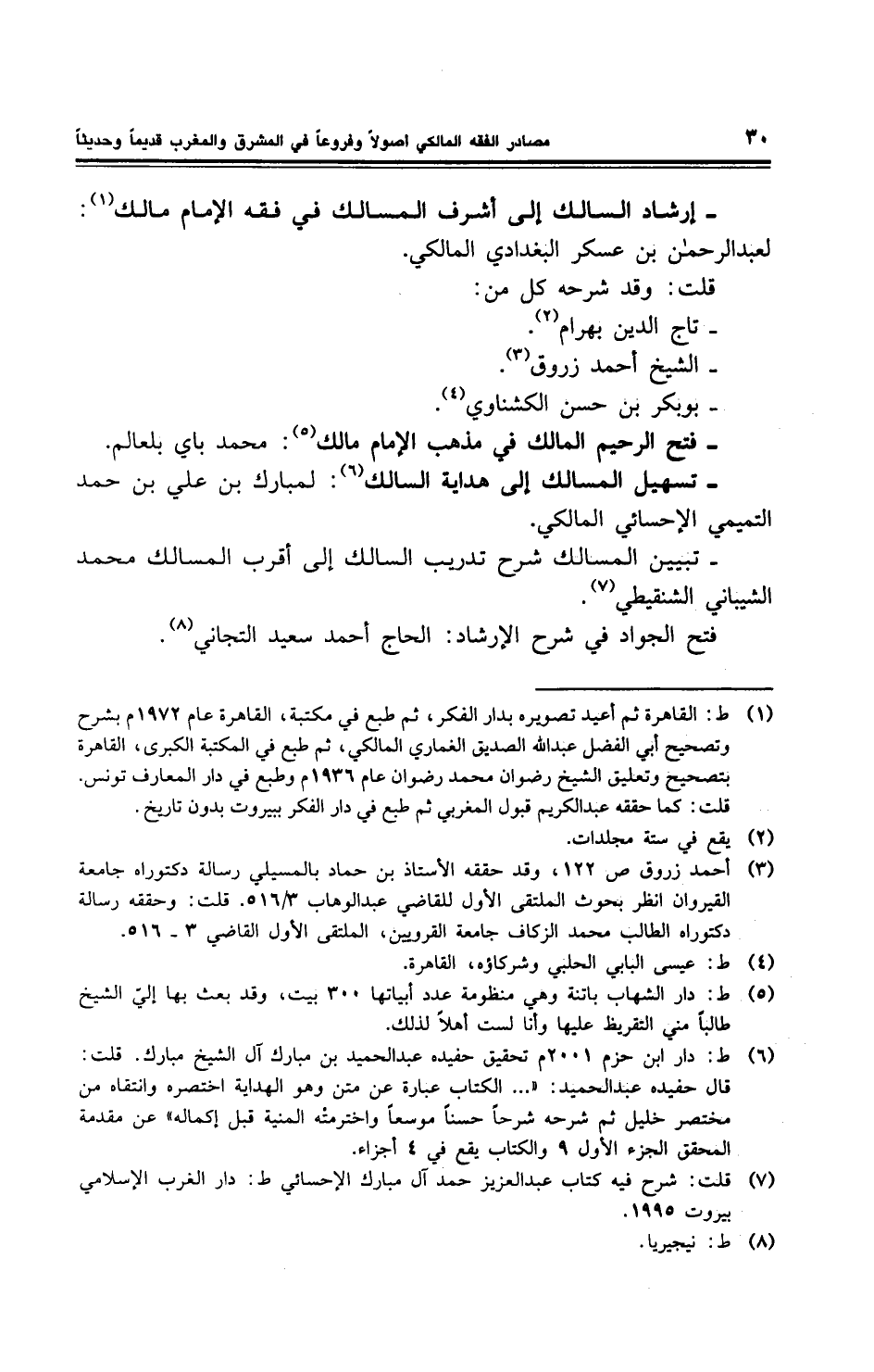 - إرشاد السالك إلى أشرف المسالك في فقه الإمام مالك: