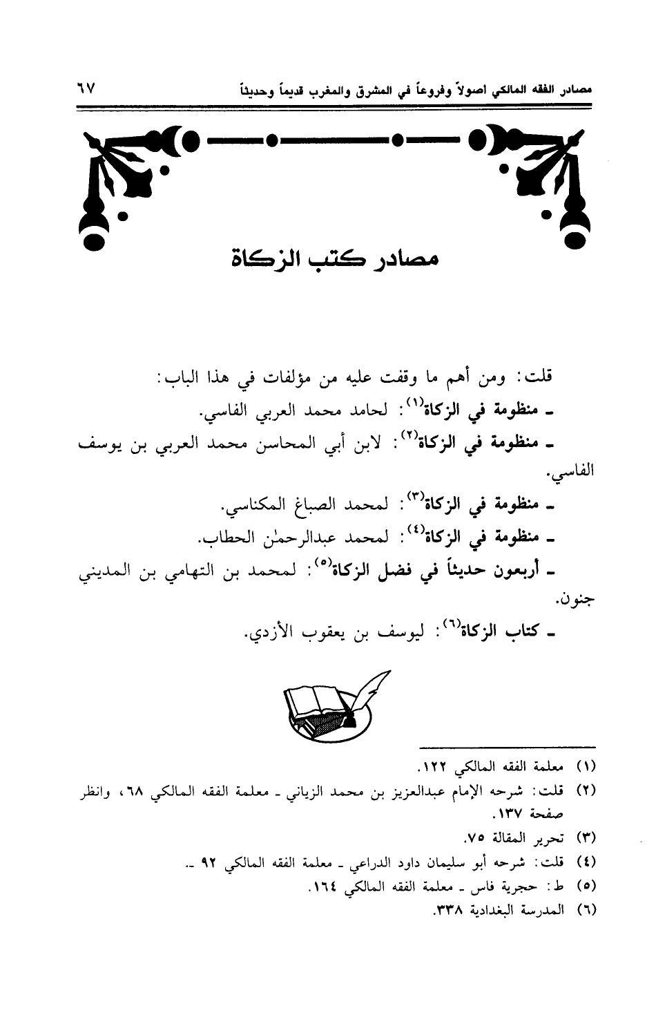 - منظومة في الزكاة: لحامد محمد العربي الفاسي.