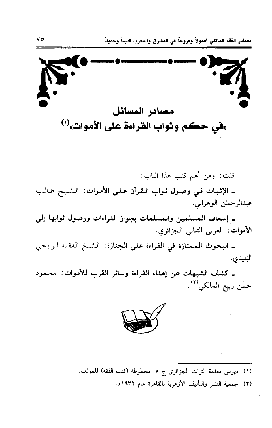 - البحوث الممتازة في القراءة على الجنازة: الشيخ الفقيه الرابحي البليدي.