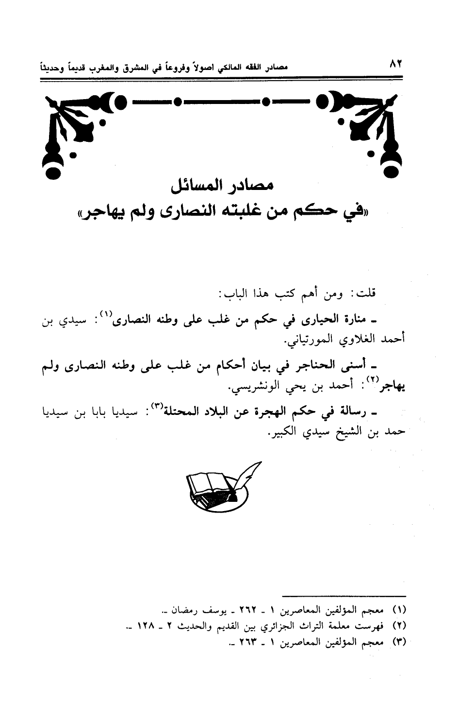 - رسالة في حكم الهجرة عن البلاد المحتلة: سيديا بابا بن سيديا حمد بن الشيخ سيدي الكبير.