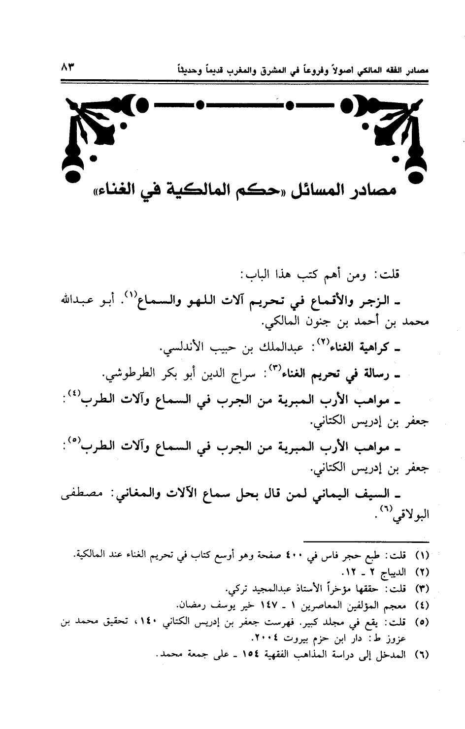 - مواهب الأرب المبرية من الجرب في السماع وآلات الطرب: جعفر بن إدريس الكتاني.