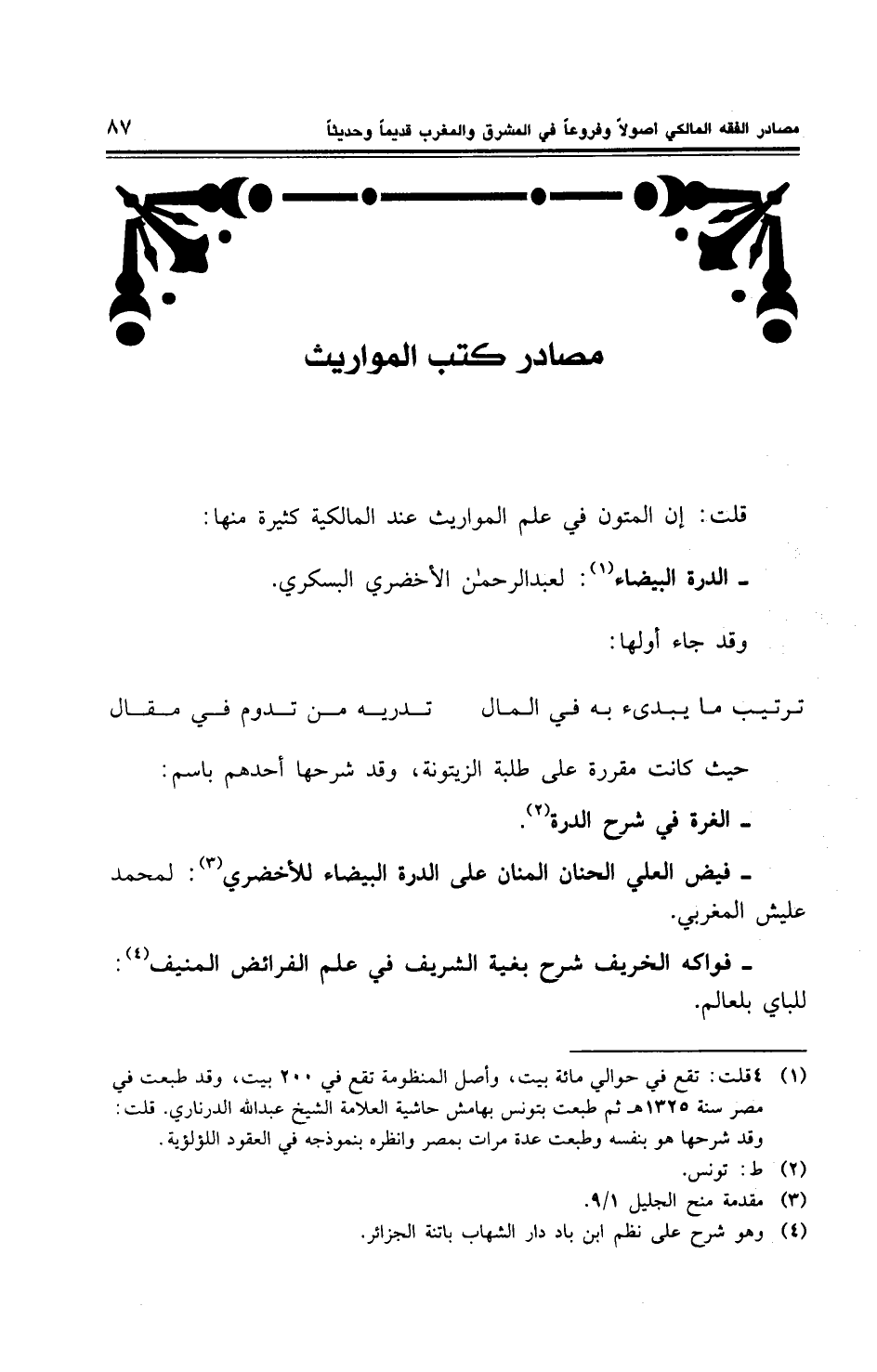 قلت: إن المتون في علم المواريث عند المالكية كثيرة منها: