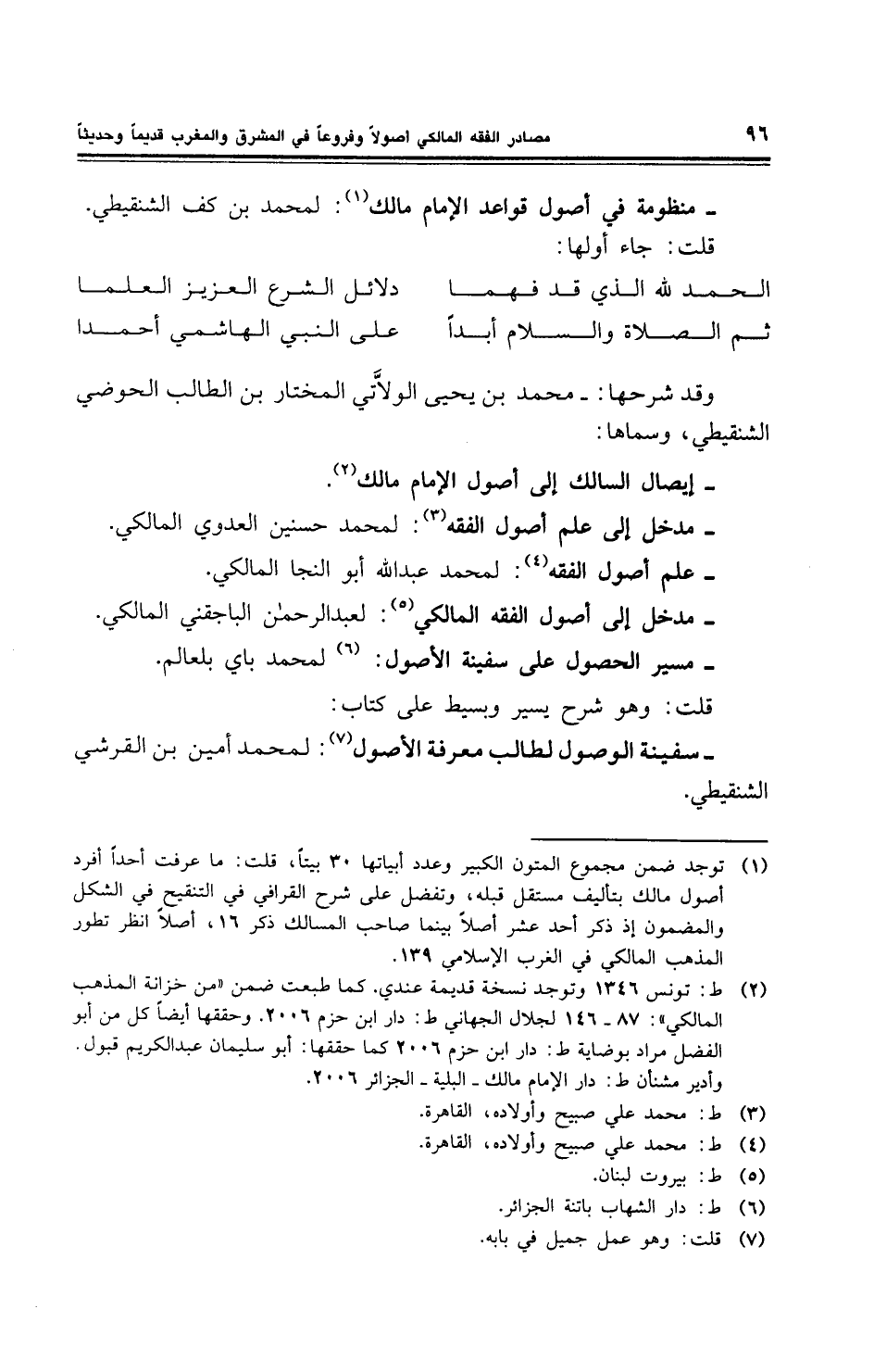 - منظومة في أصول قواعد الإمام مالك: لمحمد بن كف الشنقيطي.