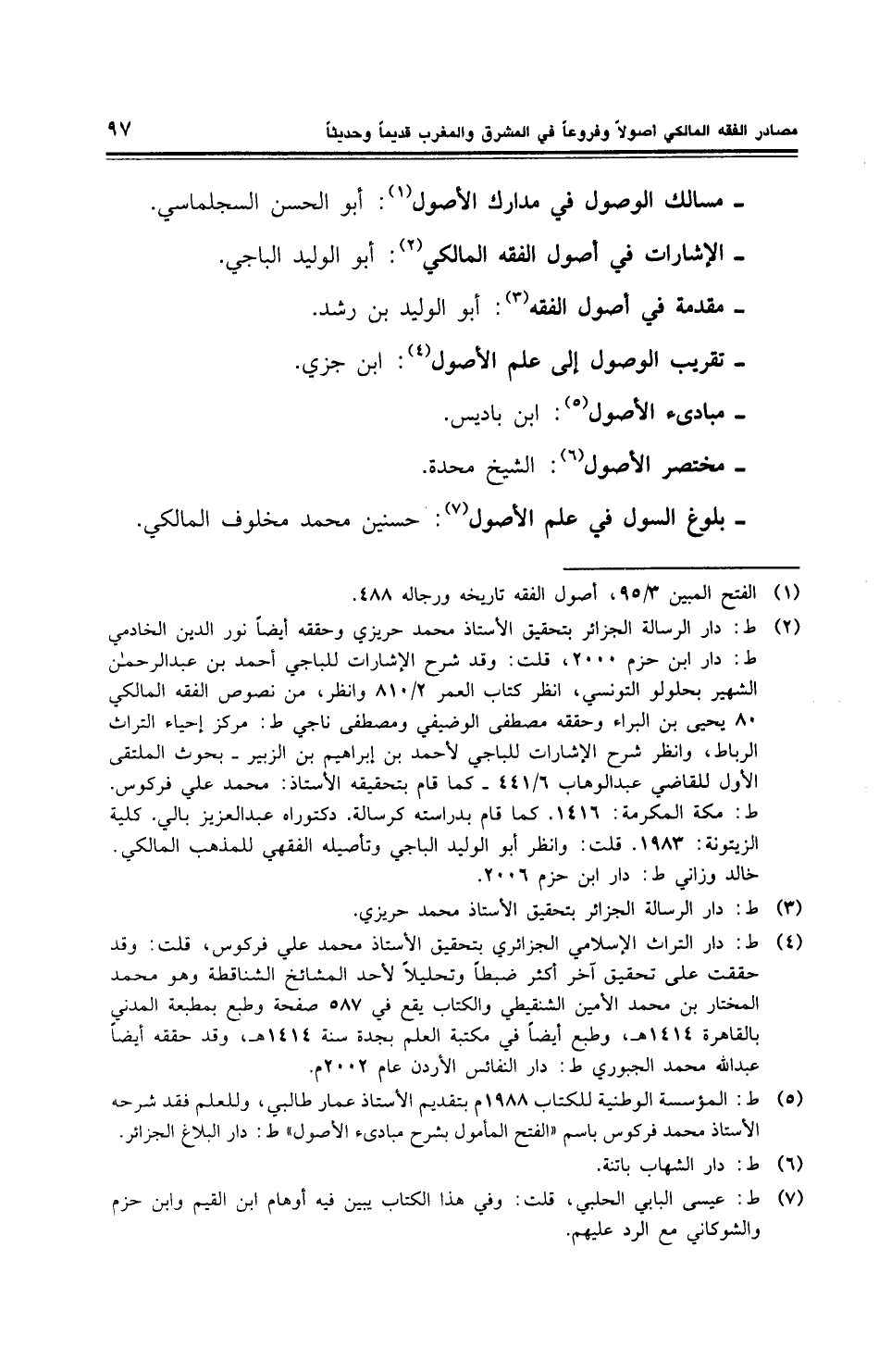 - الإشارات في أصول الفقه المالكي: أبو الوليد الباجي.