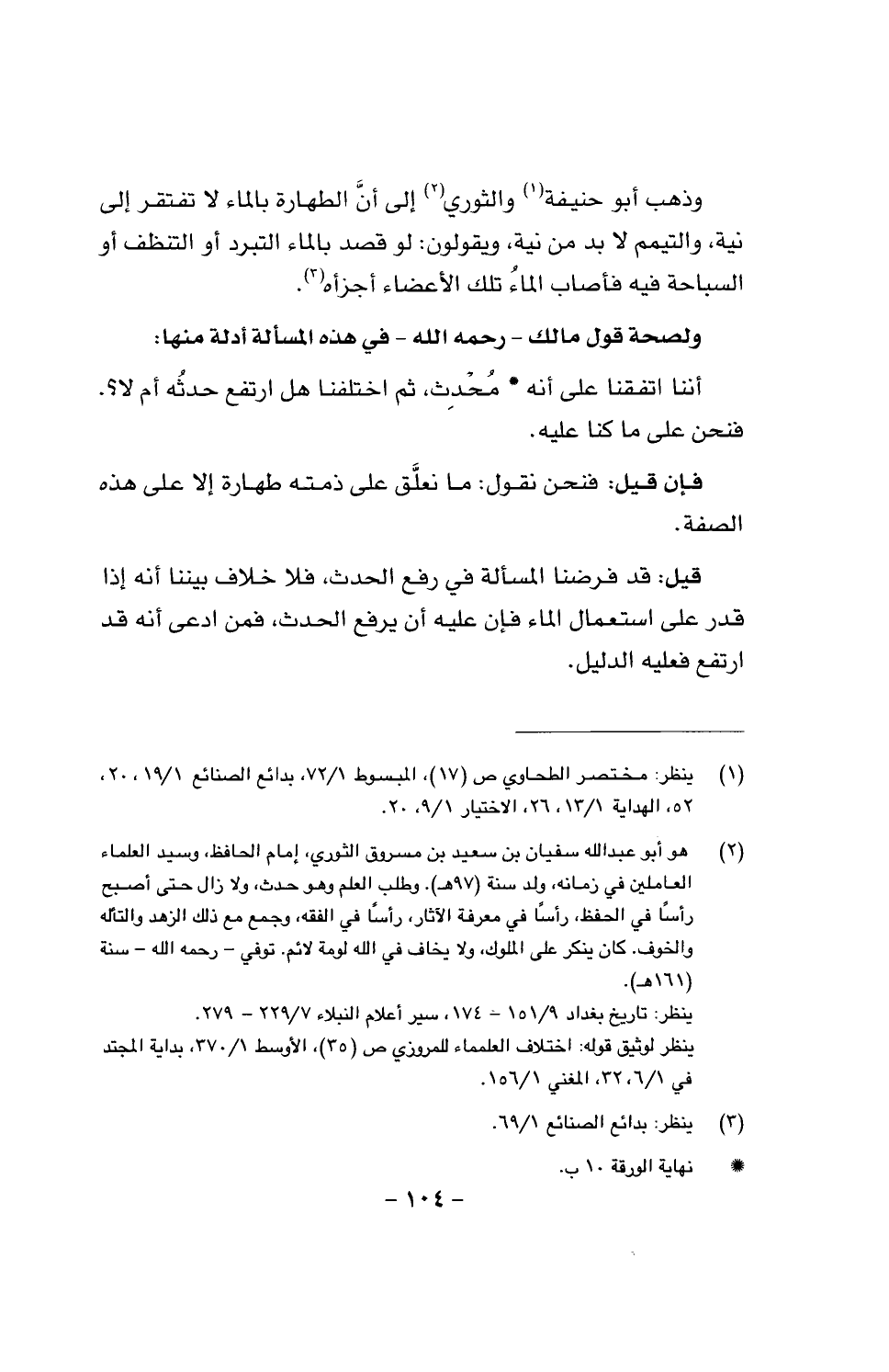 وذهب أبو حنيفة، والثوري إلى أن الطهارة بالماء لا تفتقر إلى نية، والتيمم لا بد من نية، ويقولون: لو قصد بالماء التبرد أو التنظف أو السباحة فيه فأصاب الماءُ تلك الأعضاء أجزأه.