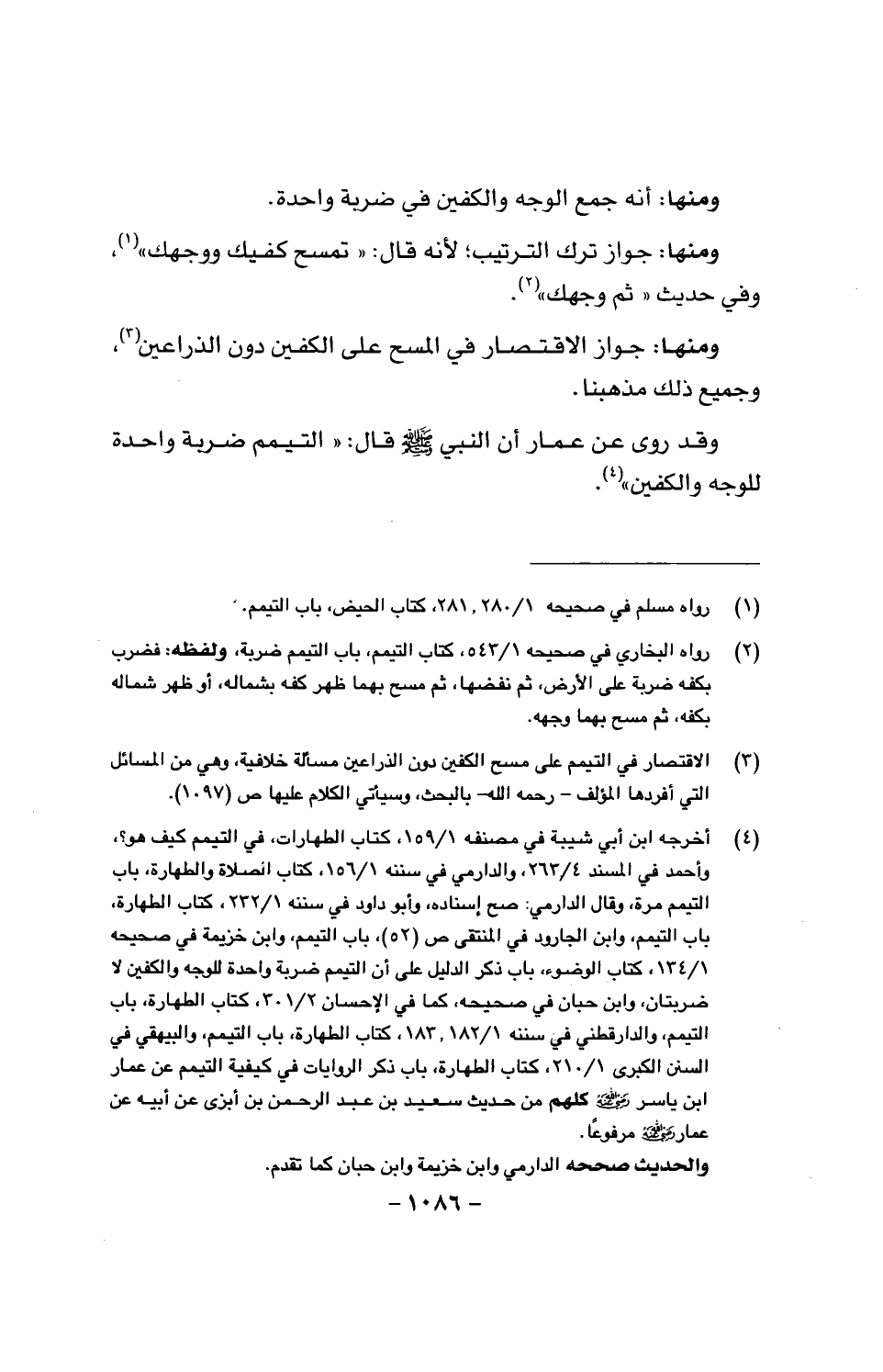 ومنها: جواز الاقتصار في المسح على الكفين دون الذراعين، وجميع ذلك مذهبنا.