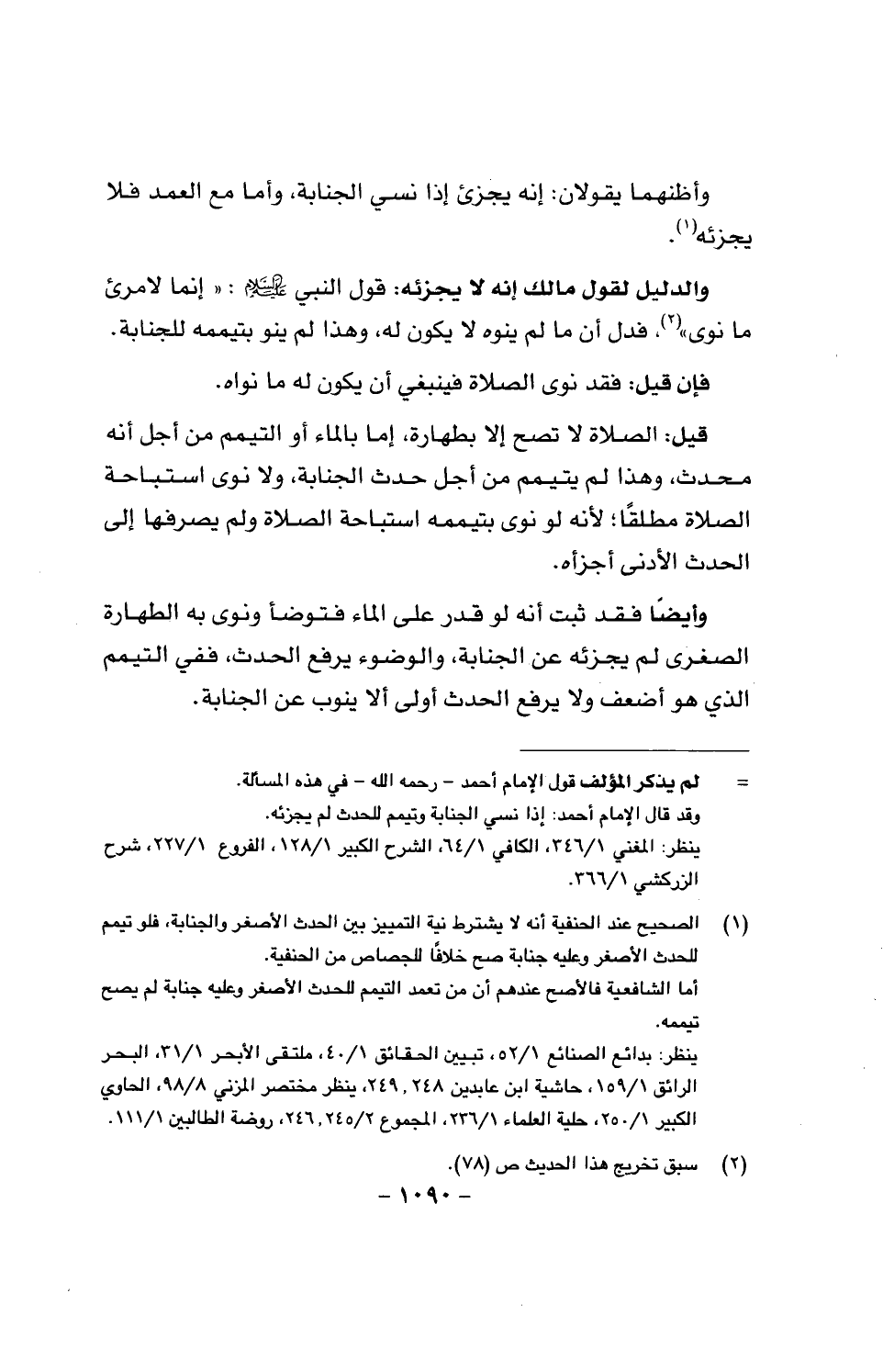 والدليل لقول مالك إنه لا يجزئه: قول النبي عليه الصلام: «إنما لامرئ ما نوى». فدل أن ما لم ينوه لا يكون له، وها لم ينو بتيممه للجنابة.