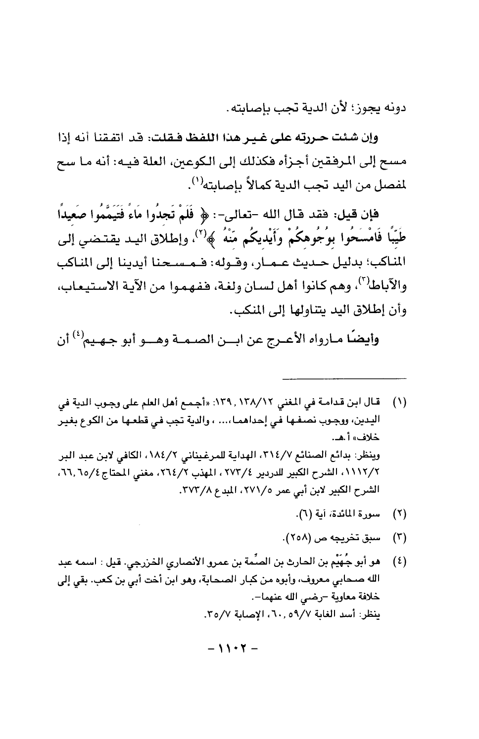 وأيضا ما رواه الأعرج عن ابن الصمة وهو أبو جهيم أن