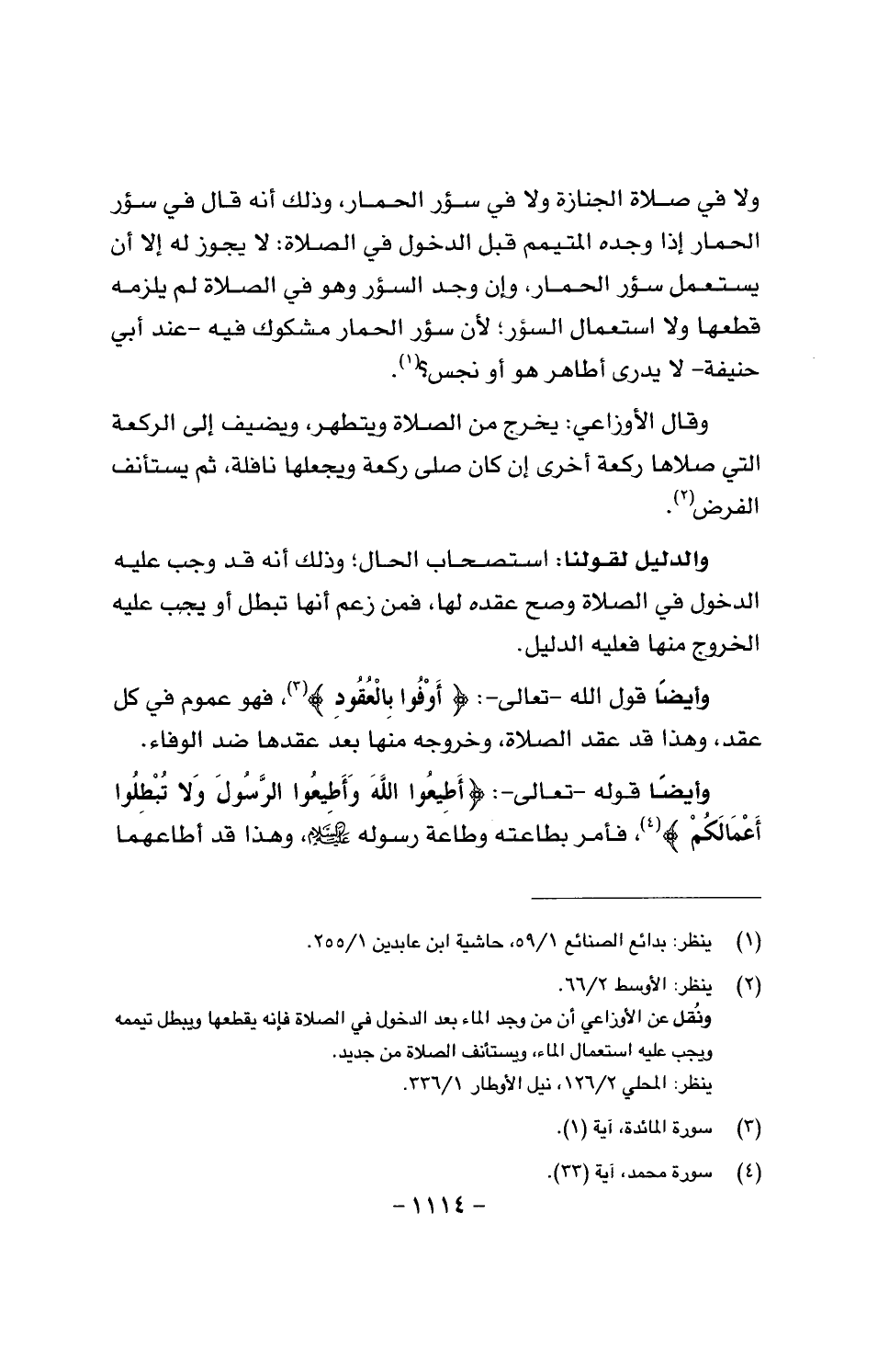 وأيضا قوله - تعالى -: {أوفوا بالعقود}، فهو عموم في كل عقد، وهذا عقد الصلاة، وخروجه منها بعد عقدها ضد الوفاء.