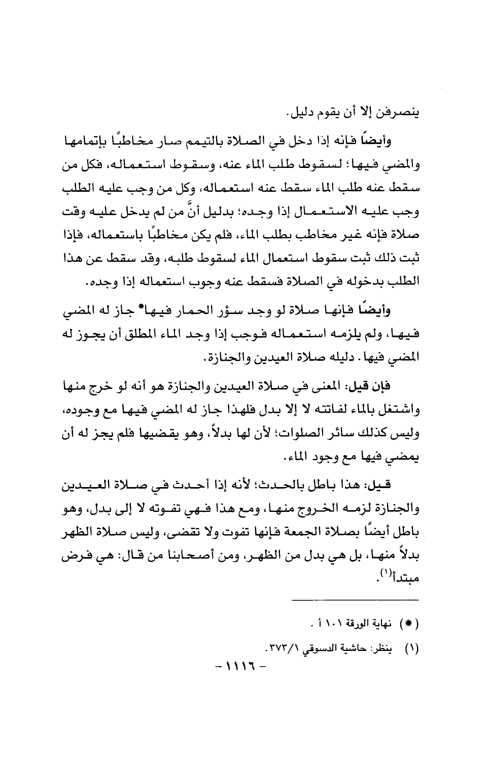 قيل: هذا باطل بالحدث؛ لأنه إذا أحدث في صلاة العيدين والجنازة لزمه الخروج منها، ومع هذا فهي تفوته لا إلى بدل، وهو باطل أيضا بصلاة الجمعة فإنها تفوت ولا تقضين وليس صلاة الظهر بدلا منا، بل هي بدل من الظهر، ومن أصحابنا من قال: هي فرض مبتدأ.