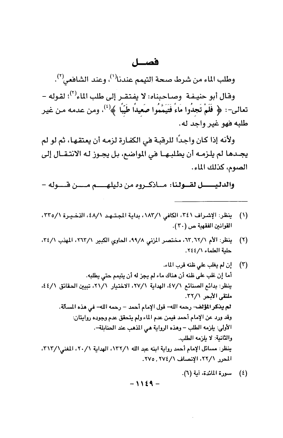 ولأنه إذا كان واجدا للرقبة في الكفارة لزمه أن يعتقها، لم ل لم يجدها لم يلزمه أن يطلبها في المواضع، بل يجوز له الانتقال إلى الصوم، كذلك الماء.