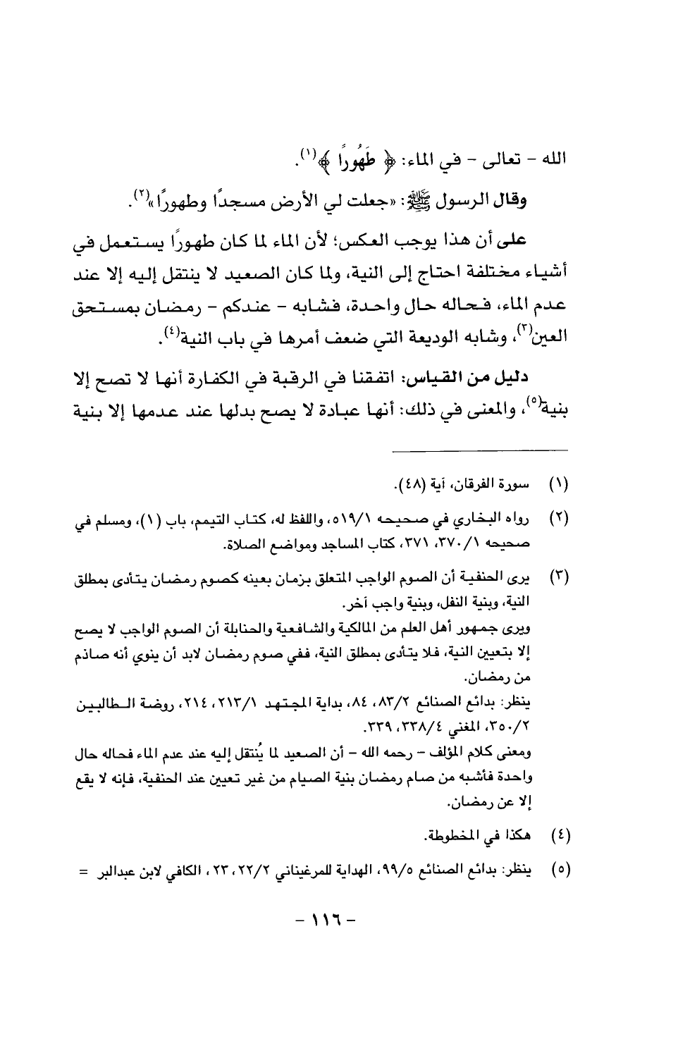 على أن هذا يوجب العكس؛ لأن الماء لما كان طهورا يستعمل في أشياء مختلفة احتاج إلى النية، ولما كان الصعيد لا ينتقل إليه إلا عند عدم الماء، فحاله حال واحدة، فشابه -عندكم - رمضان بمستحق العين، وشابه الوديعة التي ضعف أمرها في باب النية.
