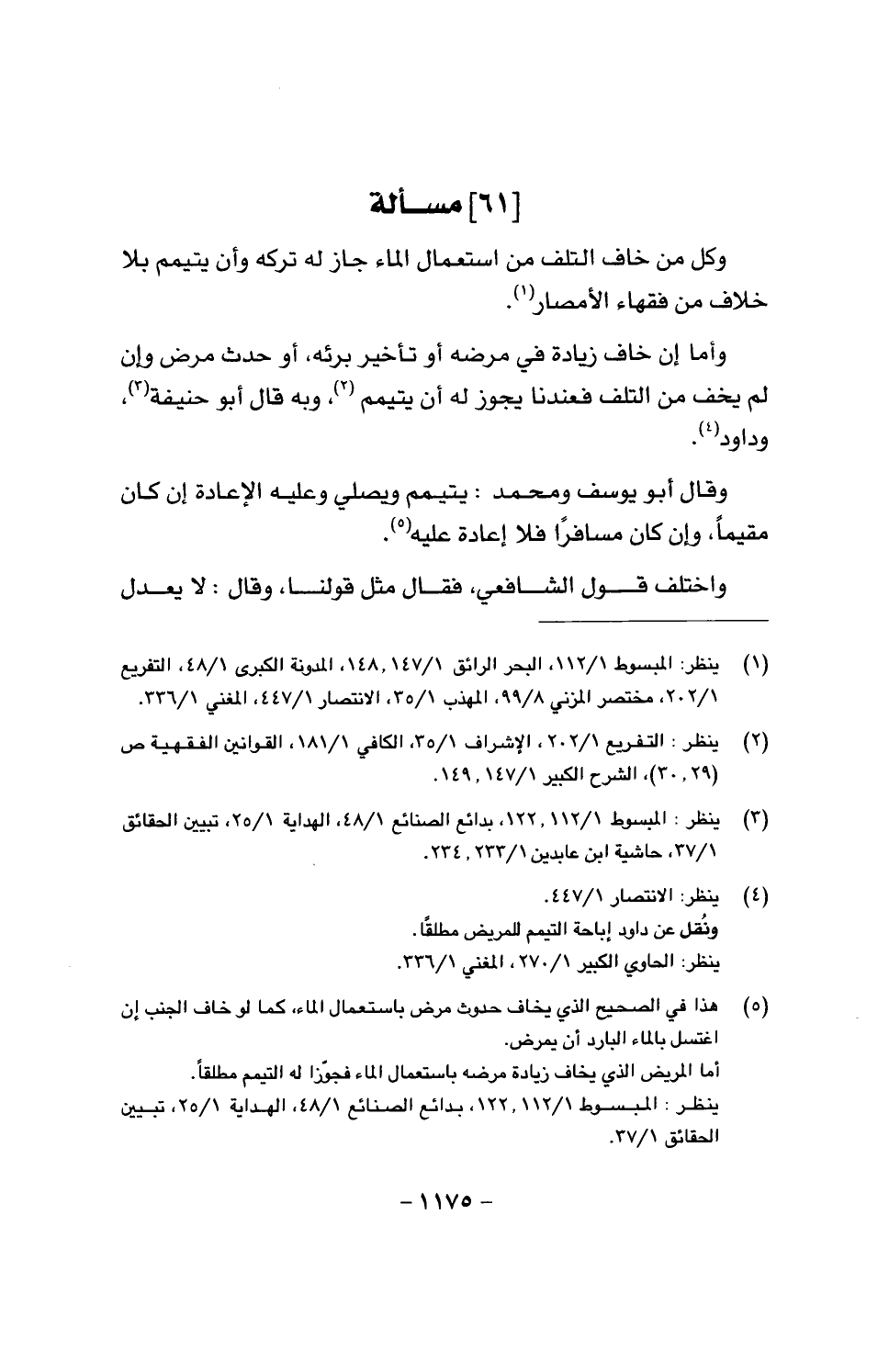 كل من خاف التلف من استعمال الماء جاز له تركه أن يتيمم بلا خلاف من فقهاء الأمصار.