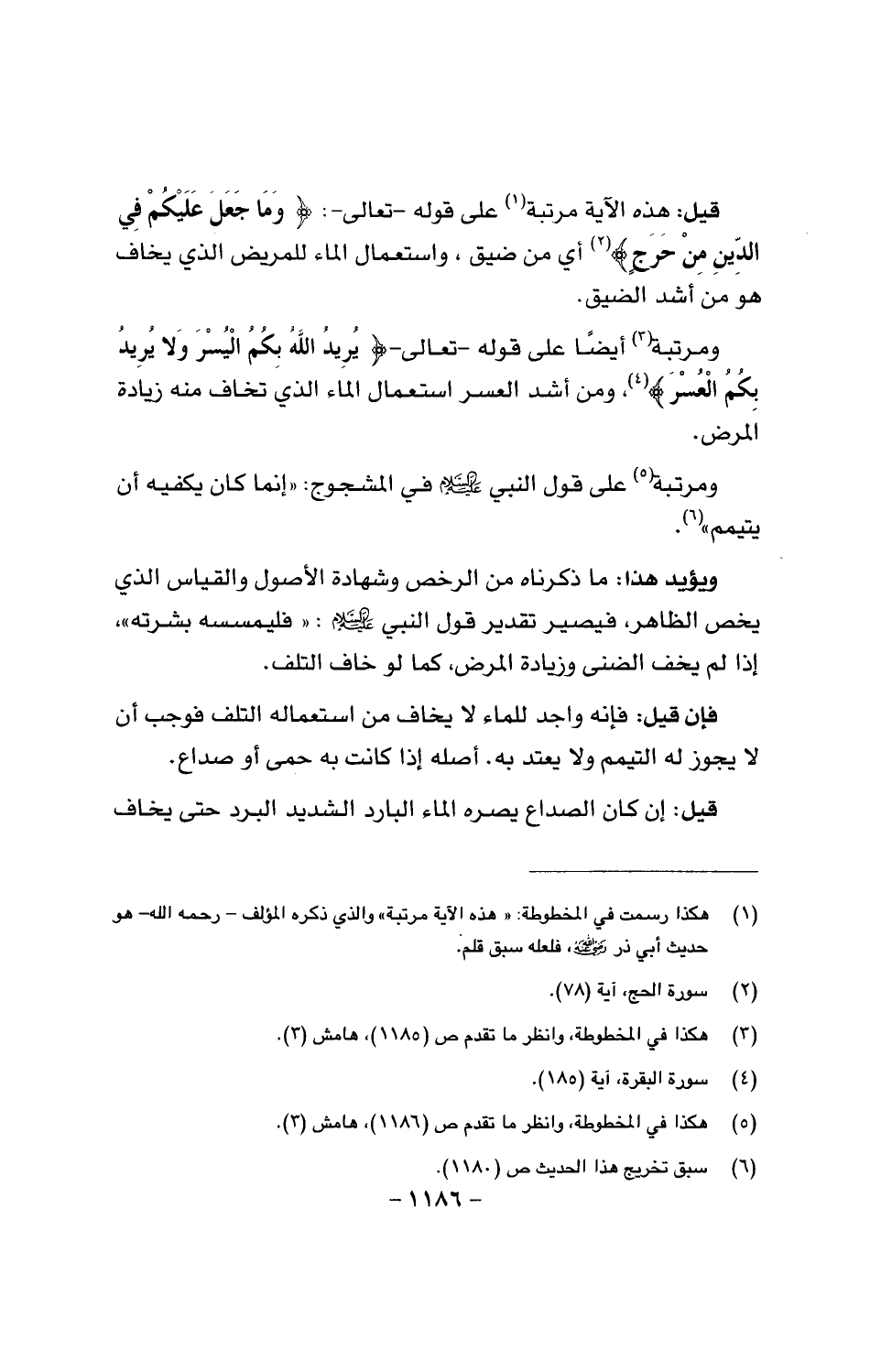 مرتبة أيضا على قوله - تعالى -: {يريد الله بكم اليسر ولا يريد بكم العسر}، من أشد العسر استعمال الماء الذي تخاف منه زيادة المرض.