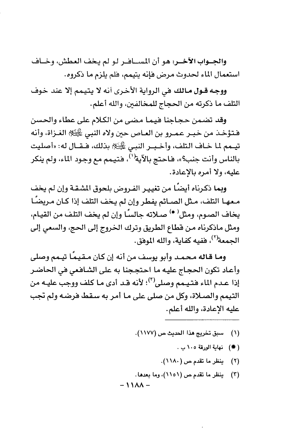 ووجه قول مالك في الرواية الأخرى أنه لا يتيمم إلا عند خوف التلف ما ذكرته من الحجاج للمخالفين، والله أعلم.
