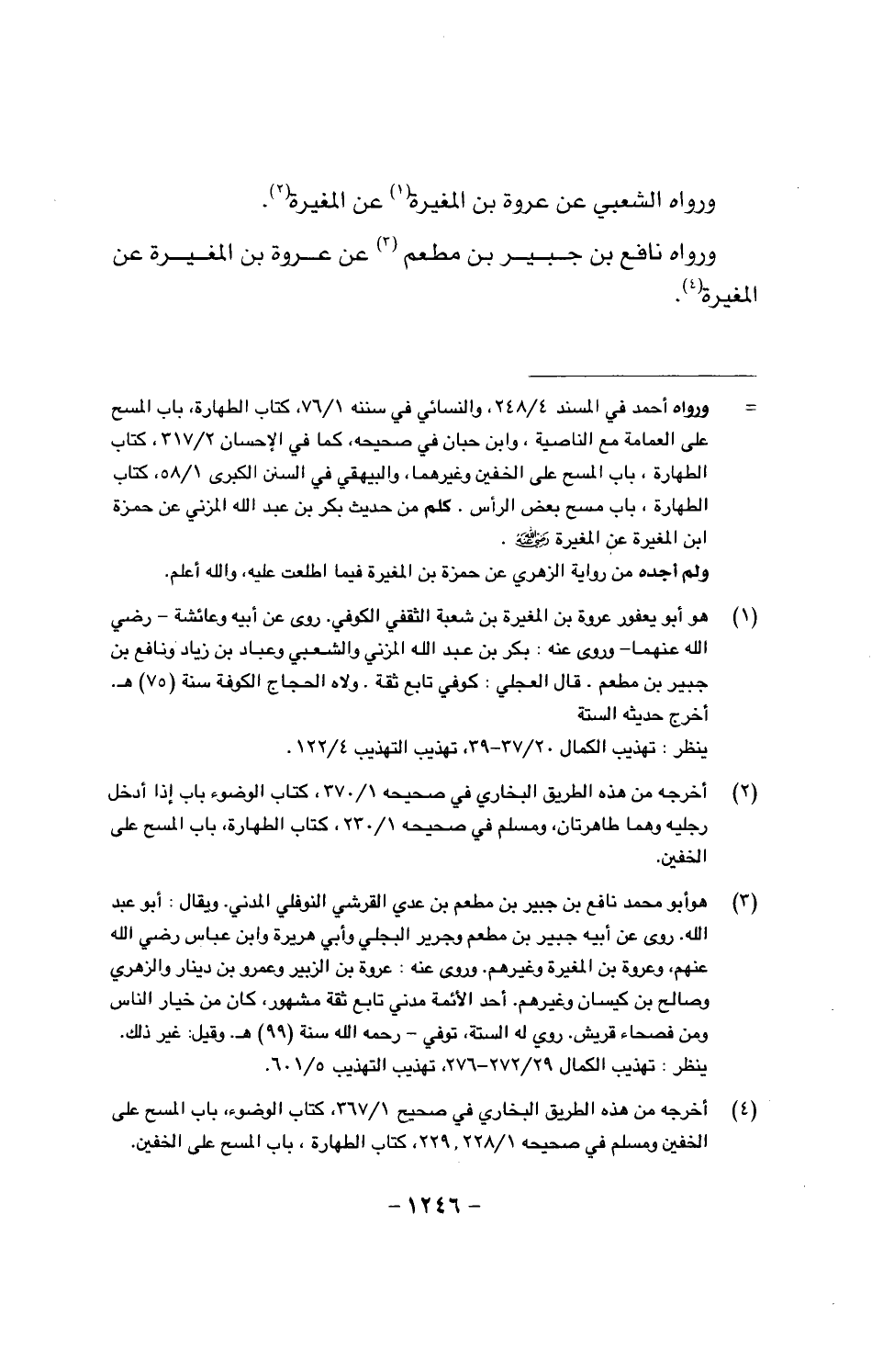 ورواه نافع بن جبير بن مطعم عن عروة بن المغيرة عن المغيرة.