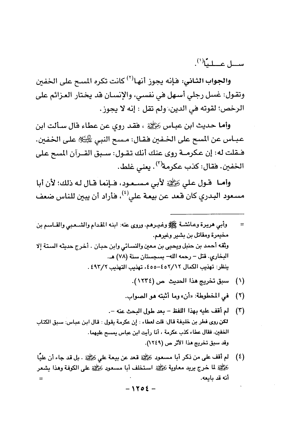 فقلت له: إن عكرمة روى عنك أنك تقول: سبق القرآن المسح على الخفين. فقال: كذب عكرمة. يعني غلط.