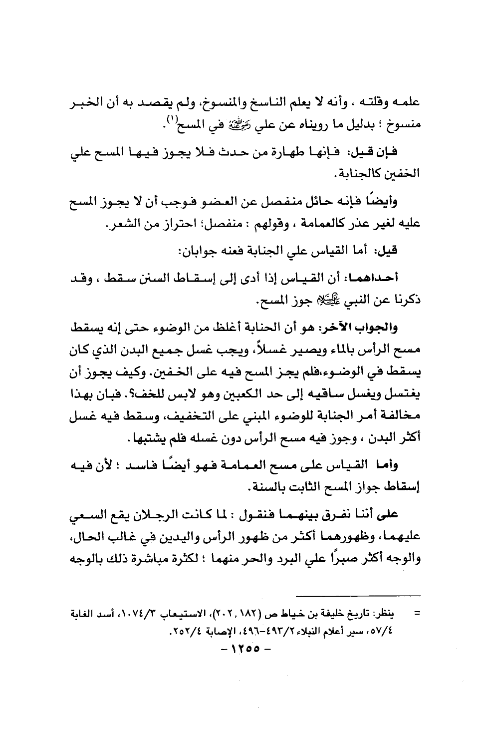 علمه وقلته، أنه لا يعلم الناسخ والمنسوخ، لم يقصد به أن الخبر منسوخ؛ بدليل ما رويناه عن علي رضي الله عنه في المسح.