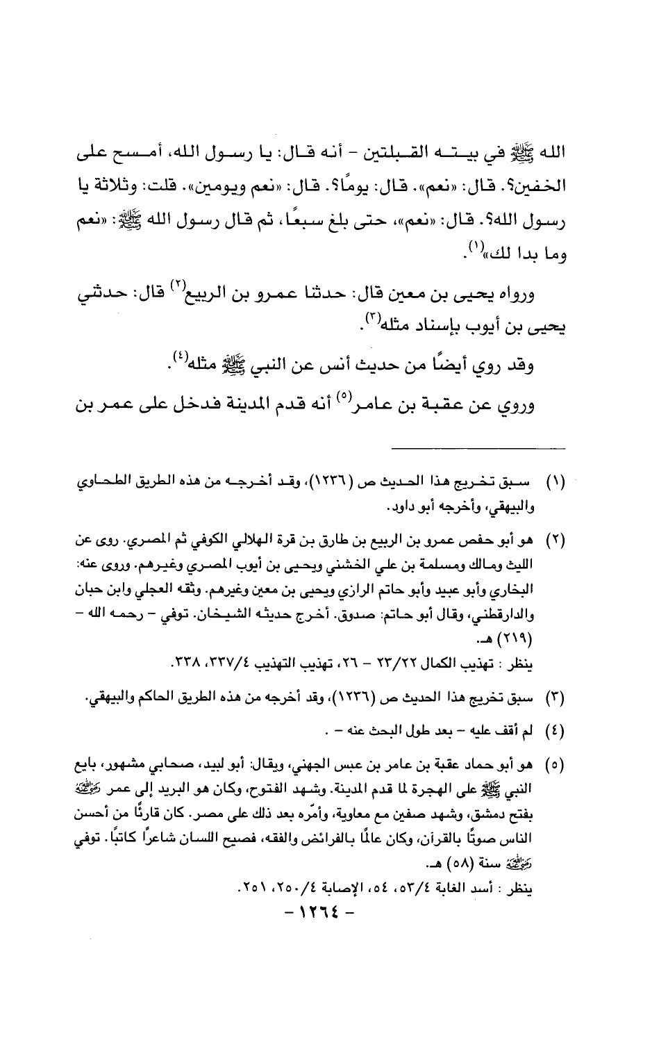الله صَلَّى اللَّهُ عَلَيْهِ وَسَلَّمَ في بيته القبلتين - أنه قال: يا رسول الله، أمسح على الخفين؟. قال: «نعم ويومين». قلت: وثلاثة يا رسول الله؟. قال: «نعم». حتى بلغ سبعا. ثم قال رسول الله صَلَّى اللَّهُ عَلَيْهِ وَسَلَّمَ: «نعم وما بدا لك».
