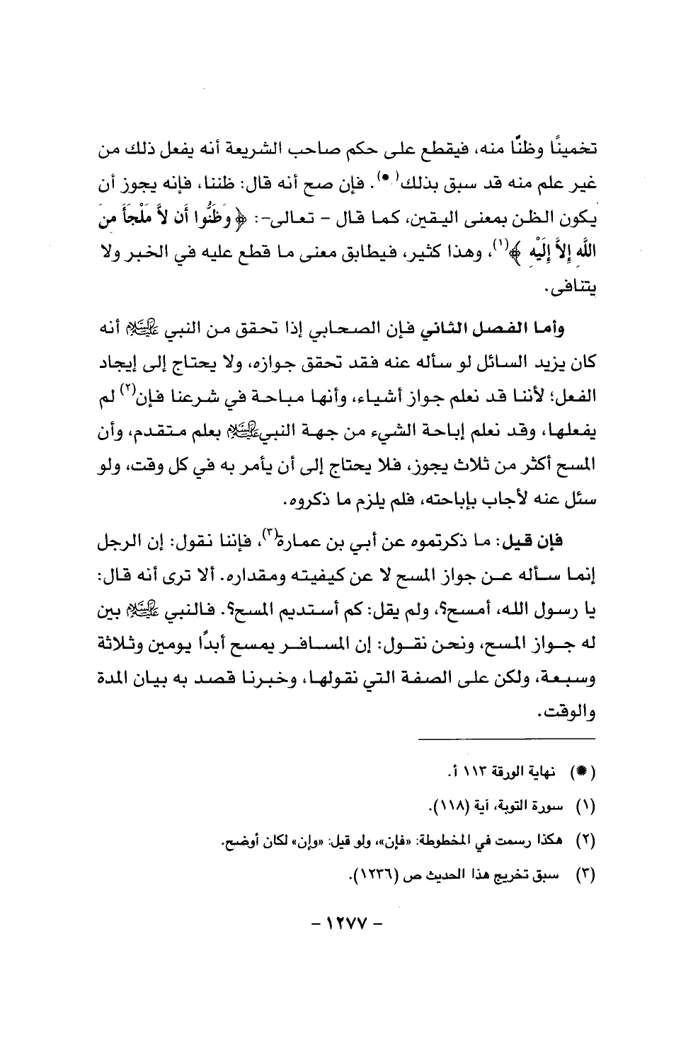 وأما الفصل الثاني فإن الصحابي إذا تحقق من النبي عليه السلام أنه كان يزيد السائل لو سأله عنه فقد تحقق جوازه، ولا يحتاج إلى إيجاد الفعل؛ لأننا قد نعلم جواز أشياء، وأنها مباحة في شرعنا فإن لم يفعلها، وقد نعلم إباحة الشيء من جهة النبي عليه السلام بعلم متقدم، وأن المسح أكثر من ثلاث يجوز، فلا يحتاج إلى أن يأمر به في كل وقت، ولو سئل عنه لأجاب بإباحته، فلم يلزم ما ذكروه.