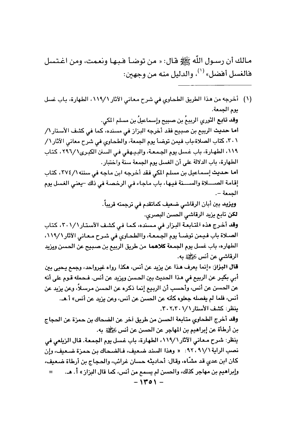 مالك أن رسول الله صَلَّى اللَّهُ عَلَيْهِ وَسَلَّمَ قال: «من توضأ فبها نعمت، ومن اغتسل فالغسل أفضل»، والدليل منه من وجهين: