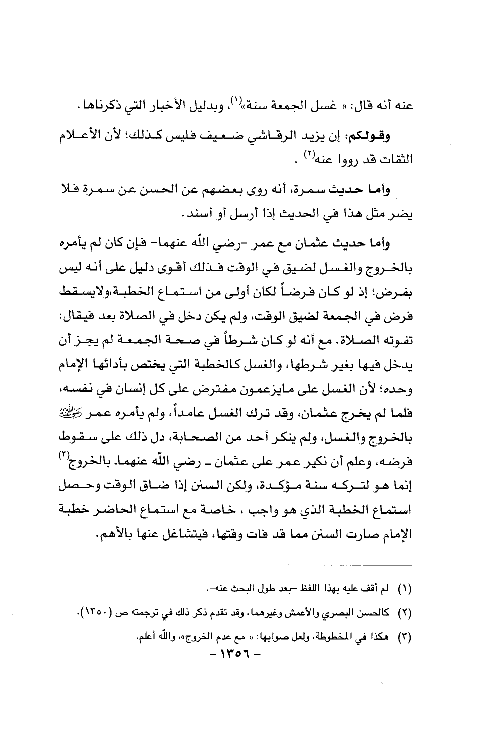 عنه أنه قال: «غسل الجمعة سنة»، وبدليل الأخبار التي ... ذكرناها.