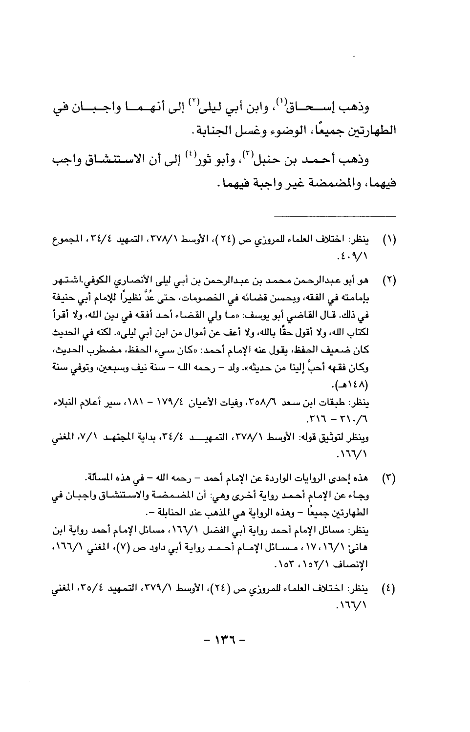 وذهب إسحاق، وابن أبي ليلى إلى أنهما واجبان في الطهارتين جميعاً، الوضوء وغسل الجنابة.
