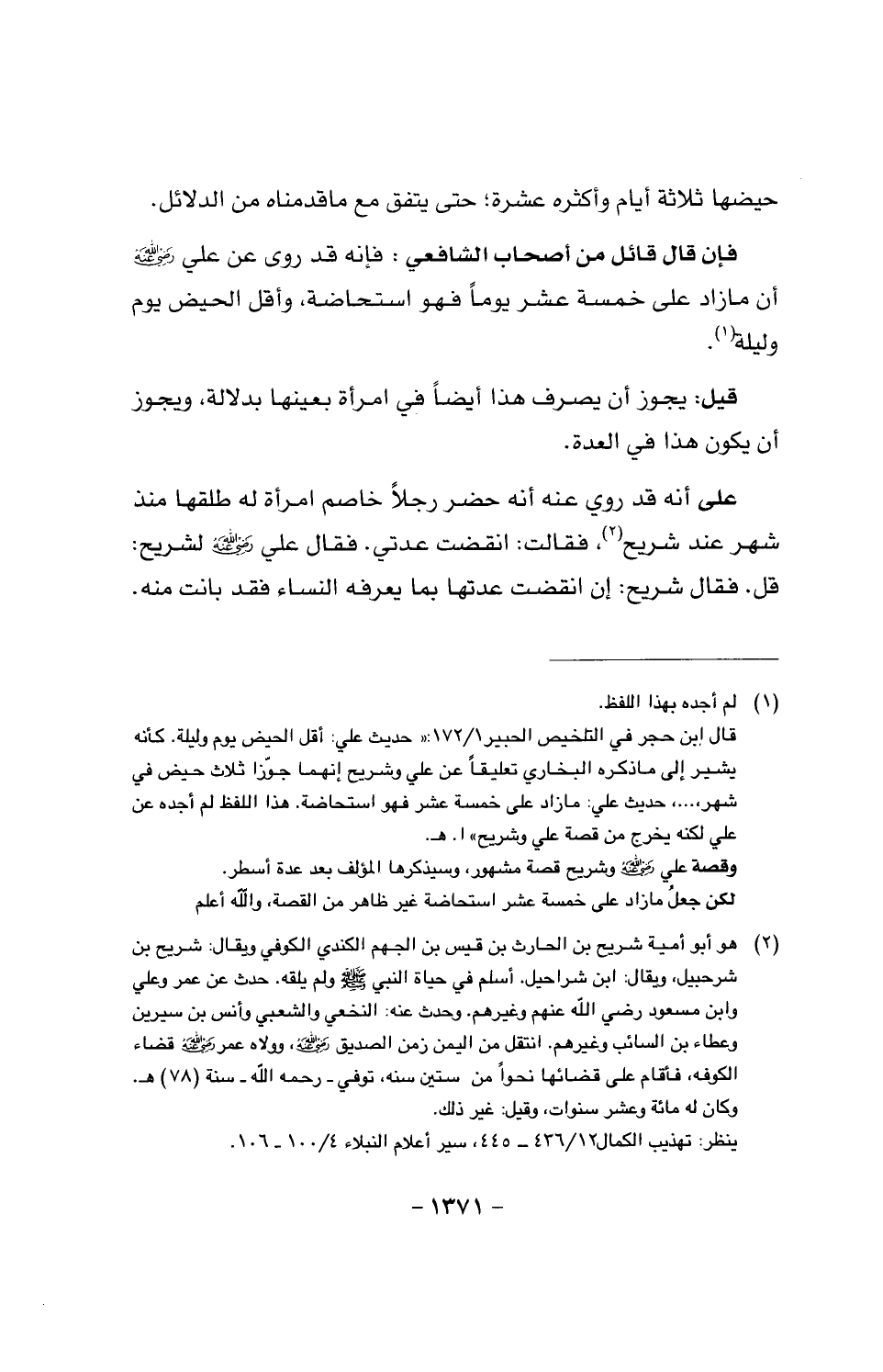 على أنه قد روي عنه أنه حضر رجلا خاصم امرأة له طلقها منذ شهر عند شريح، فالت: انقضت عدتي. فقال علي رضي الله عنه لشريح: قل. فقال شريح: إن انقضت عدتها بما يعرفه الناس فقد بانت منه.