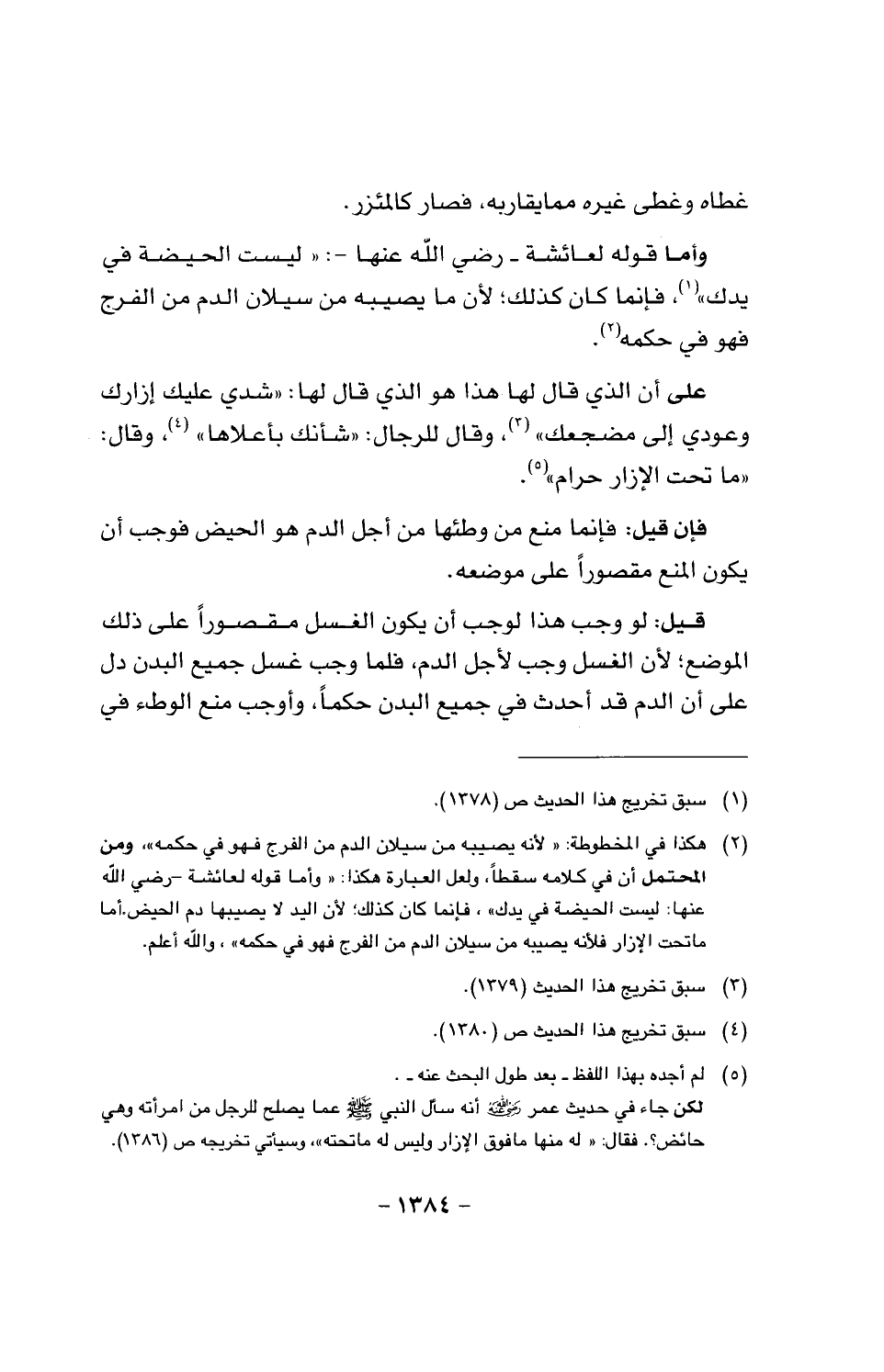 على أن الذي قال لها هذا هو الذي قال لها: «شدي عليك إزارك وعودي إلى مضجعك»، وقال للرجال: «شأنك بأعلاها»، وقال: «ما تحت الإزار حرام».