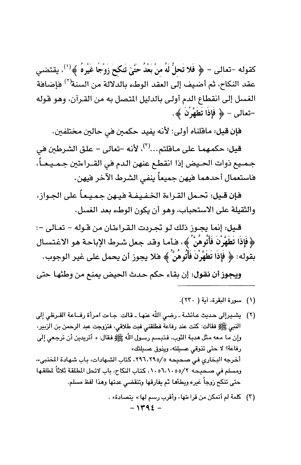 فإن قيل: تحمل القراءة الخفيفة فيهن جميعا على الجواز، والثقيلة على الاستحباب، وهو أن يكون الوطء بعد الغسل.