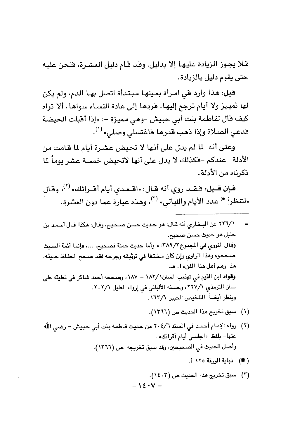 وعلى أنه لما لم يدل على أنها لا تحيض عشرة أيام لما قامت من الأدلة - عندكم - فكذلك لا يدل على أنها لا تحيض خمسة عشر يما لما ذكرناه من الأدلة.