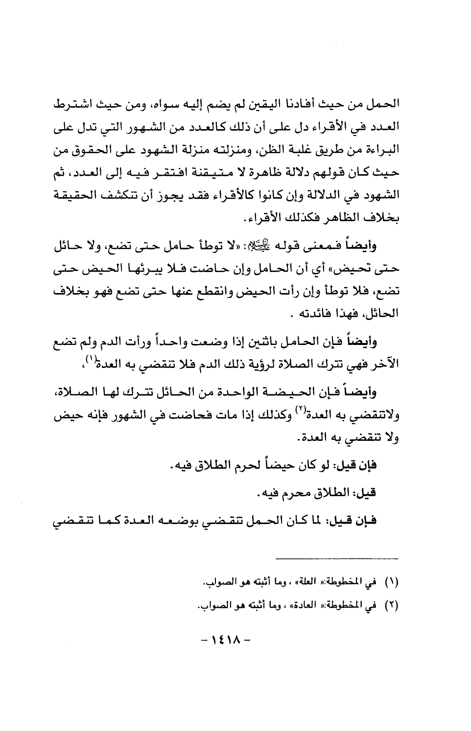 وأيضا فمعنى قوله عليه السلام: «لا توطأ حامل حتى تضع، ولا حائل حتى تحيض»، أي أن الحامل وإن حاضت فلا يبرئها الحيض حتى تضع، فلا توطأ وإن رأت الحيض وانقطع عنها حتى تضع فهو بخلاف الحائل، فهذا فائدته.