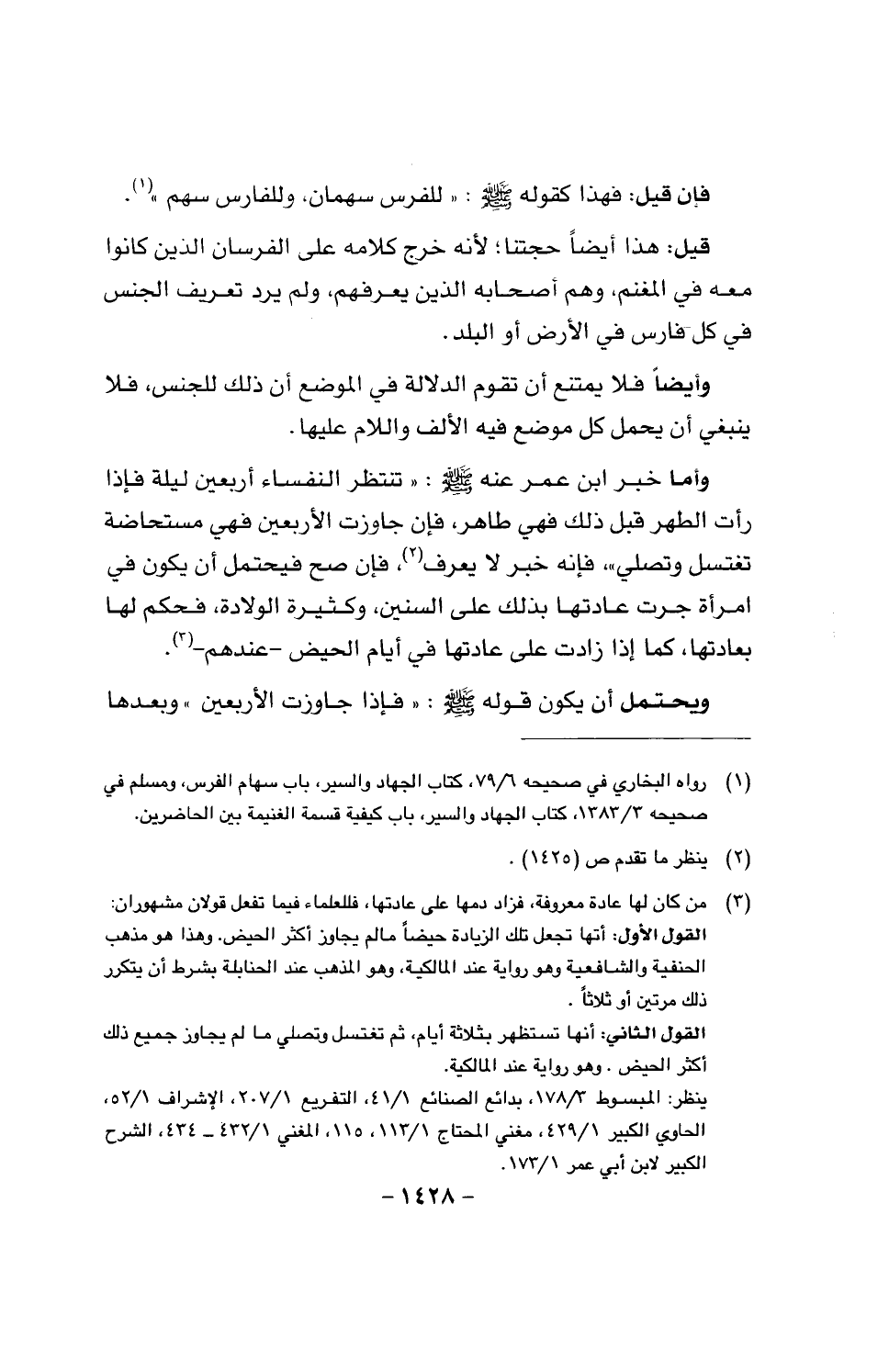 قيل: هذا أيضا حجتنا؛ لأنه خرج كلامه على الفرسان الذين كانوا معه في المغنم، وهم أصحابه الذين يعرفهم، ولم يرد تعريف الجنس في كل فارس في الأرض أو البلد.