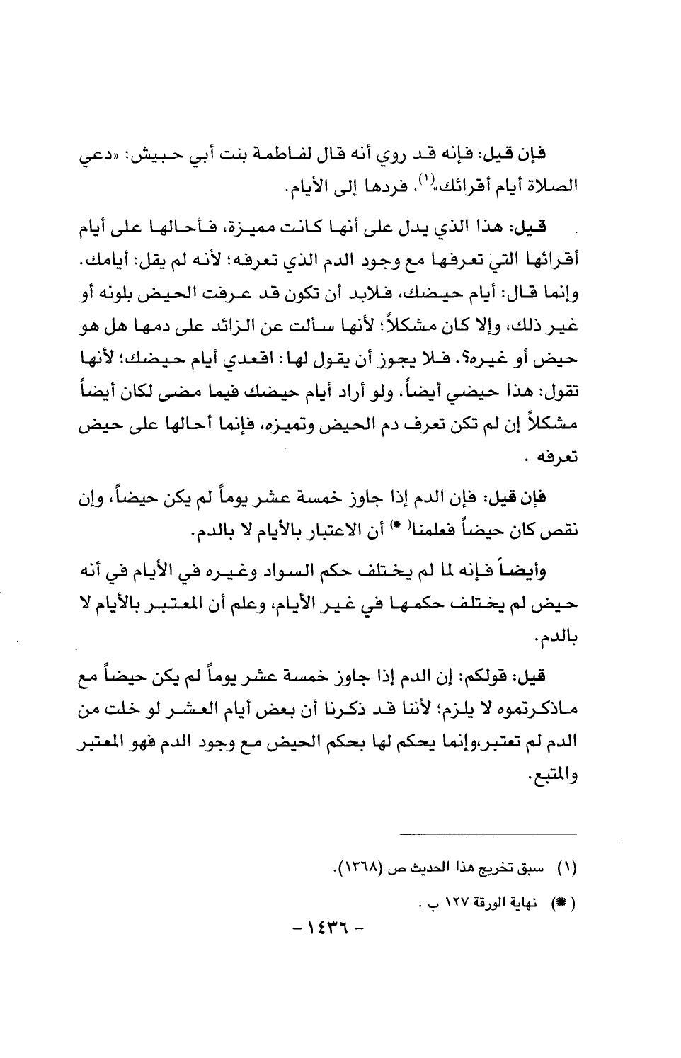 فإن قيل: فإنه قد روي أنه قال لفاطمة بنت أبي حبيش: «دعي الصلاة أيام أقرائك»، فردها إلى الأيام.