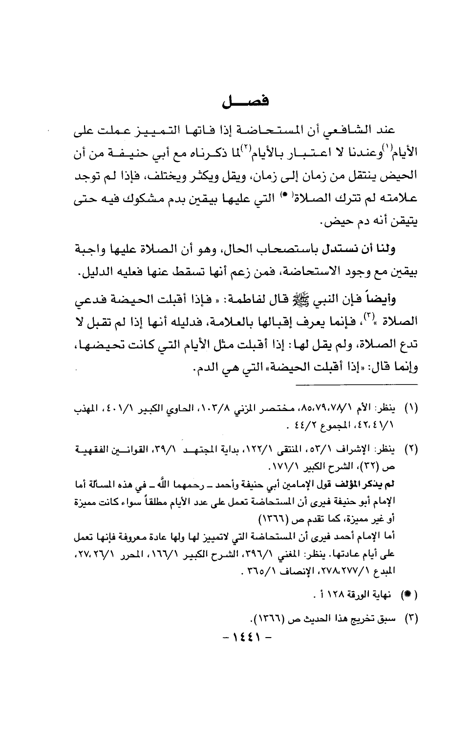 وأيضا عن النبي صَلَّى اللَّهُ عَلَيْهِ وَسَلَّمَ قال لفاطمة: «فإذا أقبلت الحيضة فدعي الصلاة»، فإنما يعرف إقبالها بالعلامة، فدليله أنها إذا لم تقبل لا تدع الصلاة، ولم يقل لها: إذا أقبلت مثل الأيام التي كانت تحيضها، وإنما قال: «إذا أقبلت الحيضة» التي هي الدم.