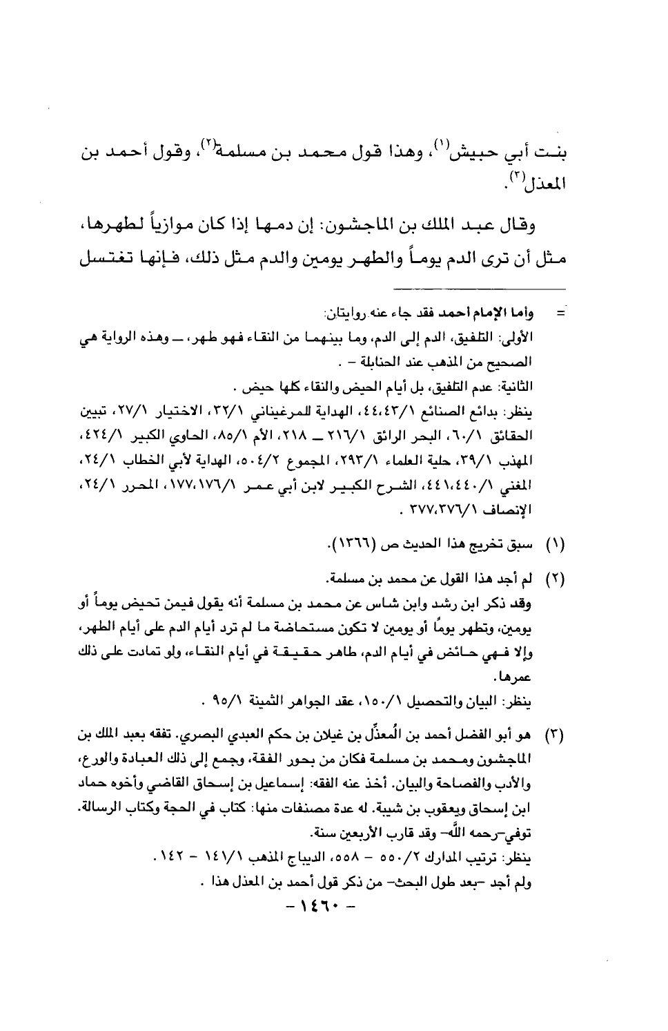 بنت أبي حبيش، وهذا قول محمد بن مسلمة، وقول أحمد بن المعذل.
